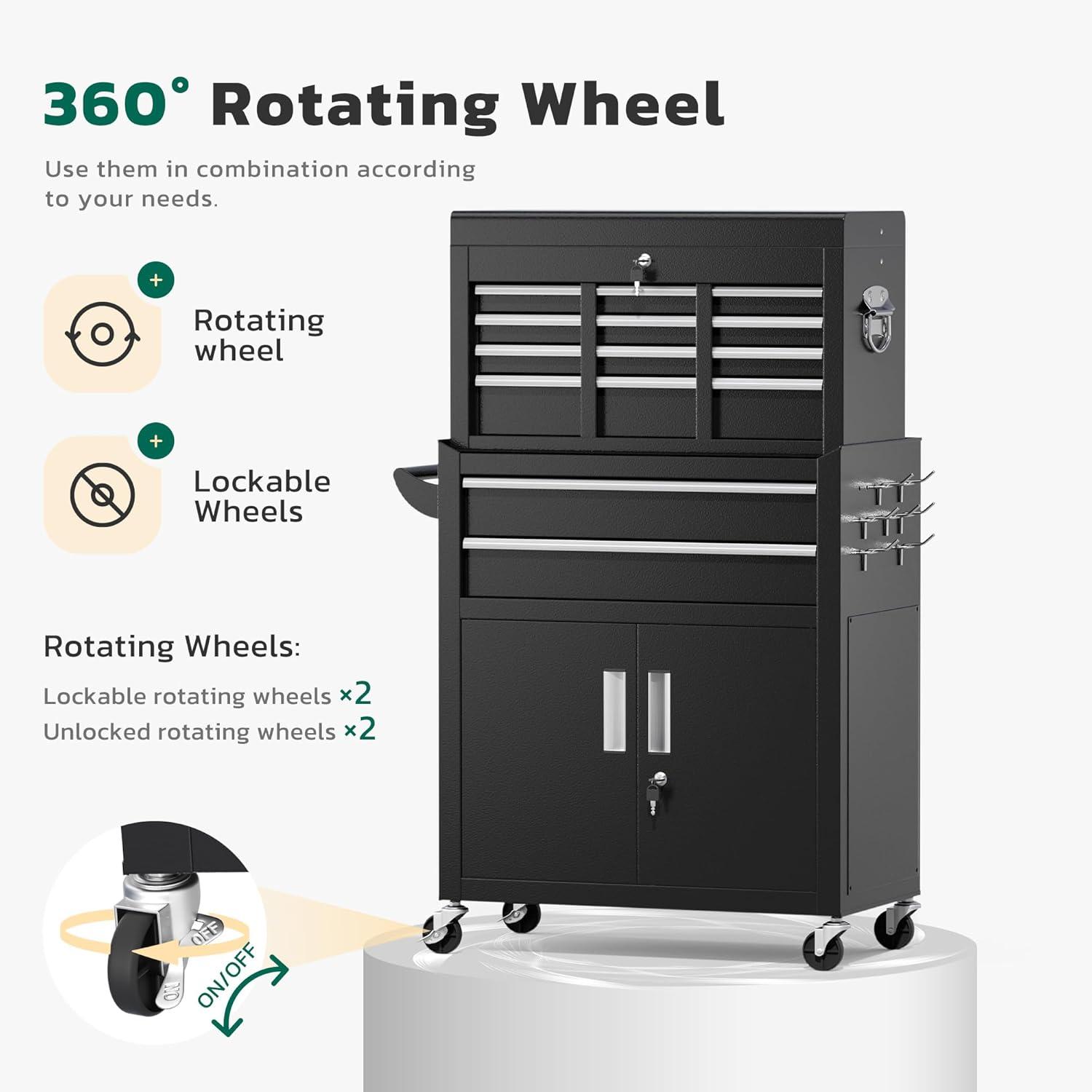 【Multi-Functional Tool Cabinet】Easy to assemble steel rolling tool chest can be used as a portable tool cart, garage tool cabinet, or mechanic storage chest, suitable for a variety of scenarios, such as factories, homes, garages, etc., can be used to store and place a variety of tools and parts.