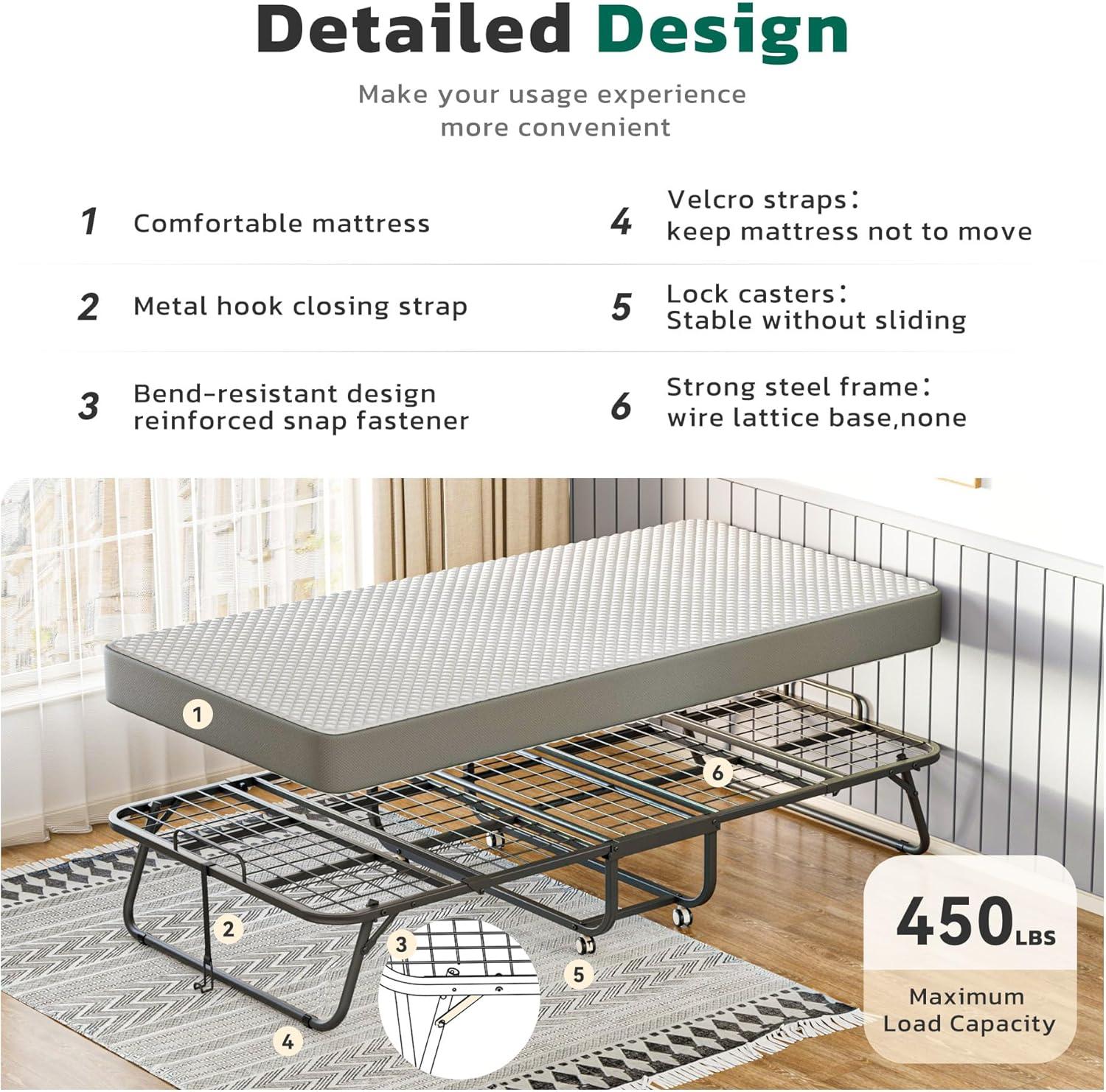 [Soft Mattress]: Greenvelly Folding Bed with 5-Inch soft memory mattress.The multi-layered sandwich design of memory mattress offers excellent support and resilience, providing you with a quiet, comfortable and relaxing rest and sleep