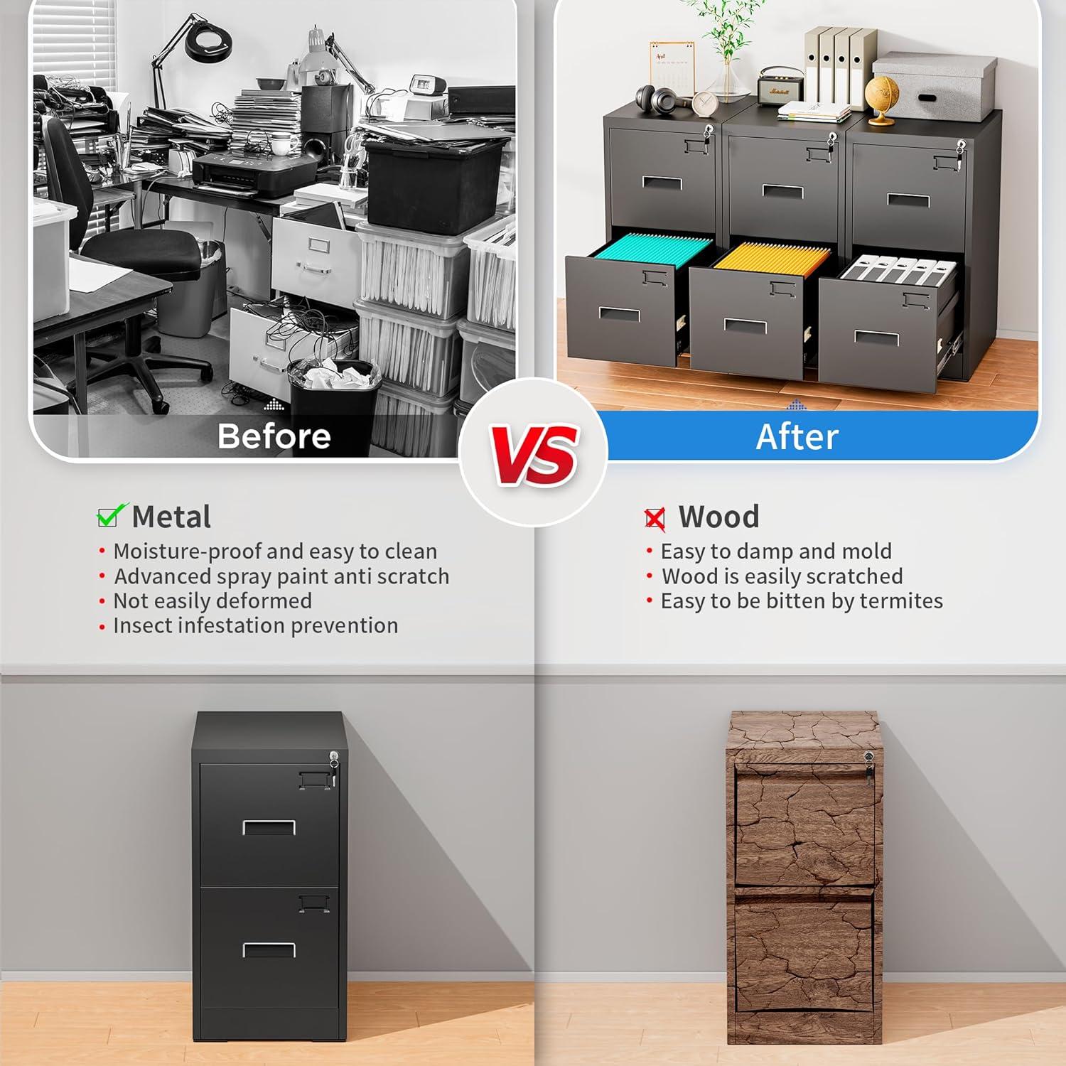 [Simple and thoughtful design]:Each metal file cabinet has simple and thoughtful design. Each equipped with a locking mechanism to fully guarantee internal data problems, each equipped with 2 keys, and each layer of drawers are equipped with a silent metal slide