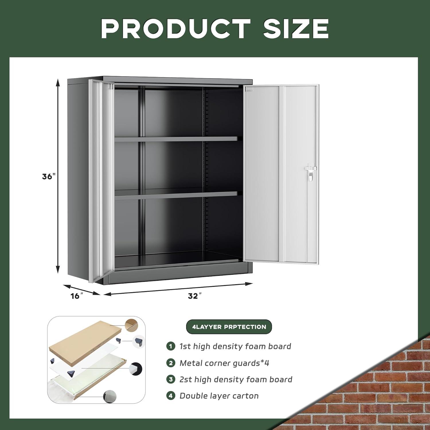 Greenvelly Metal Cabinet, 36″ Locking Storage File Cabinet with Doors and Shelves for Office,Home,Gym,School,Kitchen(Dark Grey)(Black)