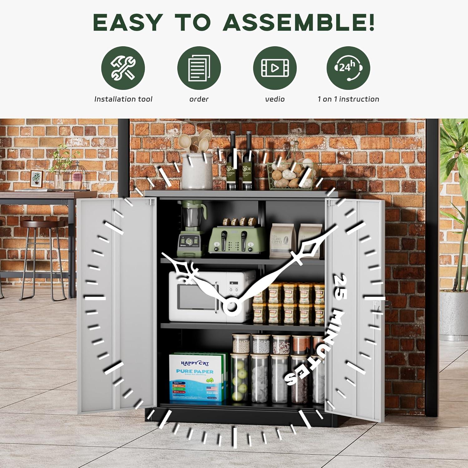 [Easy to Install]:In the package of each Greenvelly metal cabinet with lock,we put detailed but seemingly simple installation instructions. Of course, two people to install, it will save more time.Besides, if you have any questions,you could get help from after-sales team.