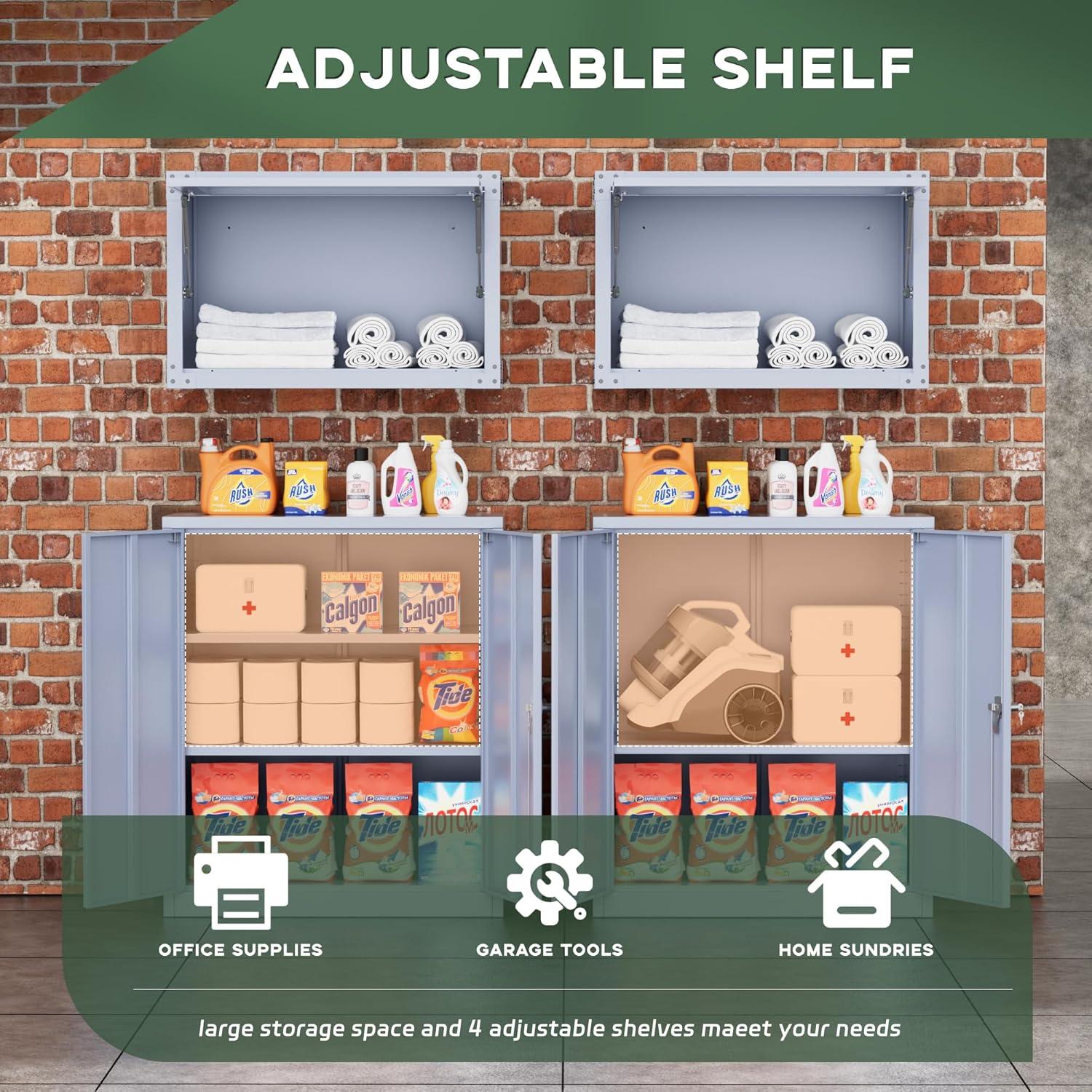 [Locking Design]:The steel garage storage cabinet with the silver handle and lock block on the side cabinet door, the overall create a modern style.Meanwhile, we provide 2 keys, the lock block is designed to effectively protect your various valuable documents and belongings.