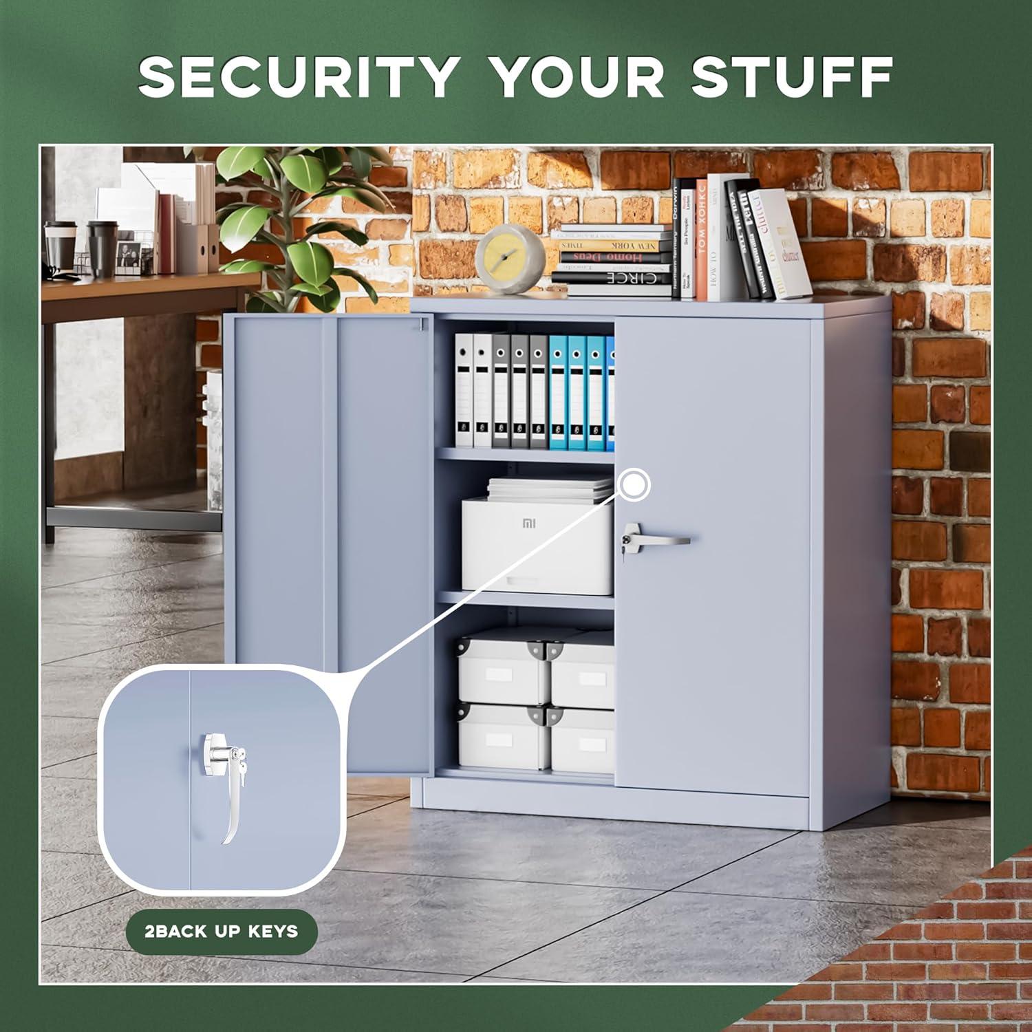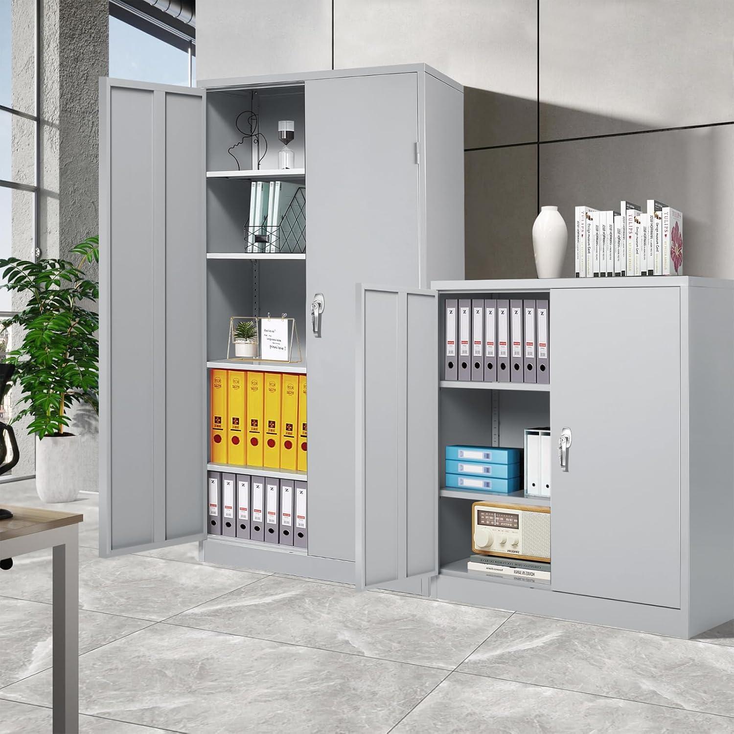 Greenvelly Metal Cabinet, 36″ Locking Storage File Cabinet with Doors and Shelves for Office,Home,Gym,School,Kitchen(Dark Grey)(Grey)