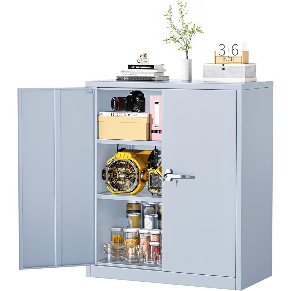 [Sturdy & Durable Material]:The metal storage cabinet is made of 0.8cm thickness cold rolled steel plate.Our small storage cabinet use multiple reinforcement designs in the structure and advanced painting processes on their surfaces, which make them good load-bearing capacity, corrosion resistance and easy cleaning characteristics.
