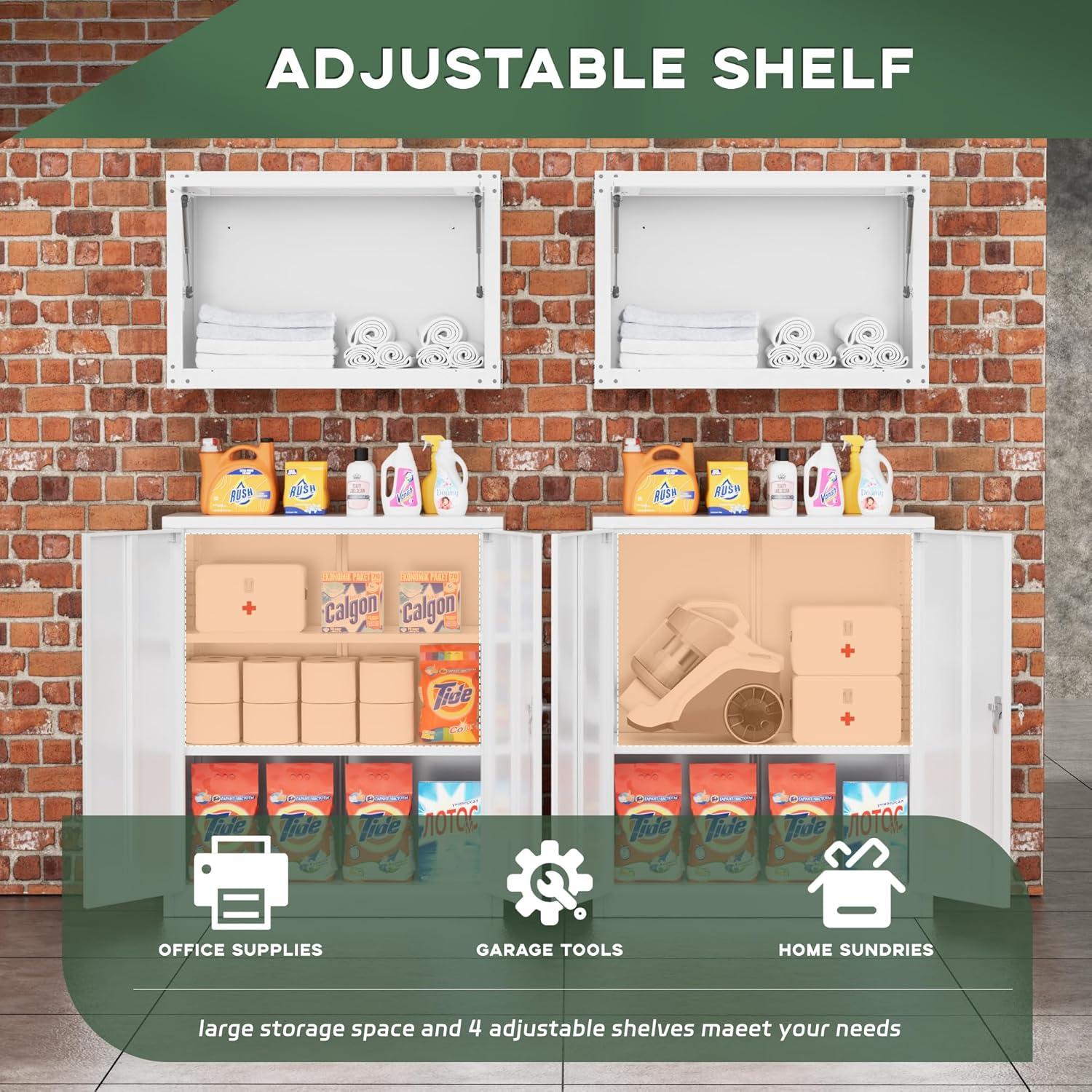 Greenvelly Metal Cabinet, 36″ Locking Storage File Cabinet with Doors and Shelves for Office,Home,Gym,School,Kitchen(Dark Grey)(White)
