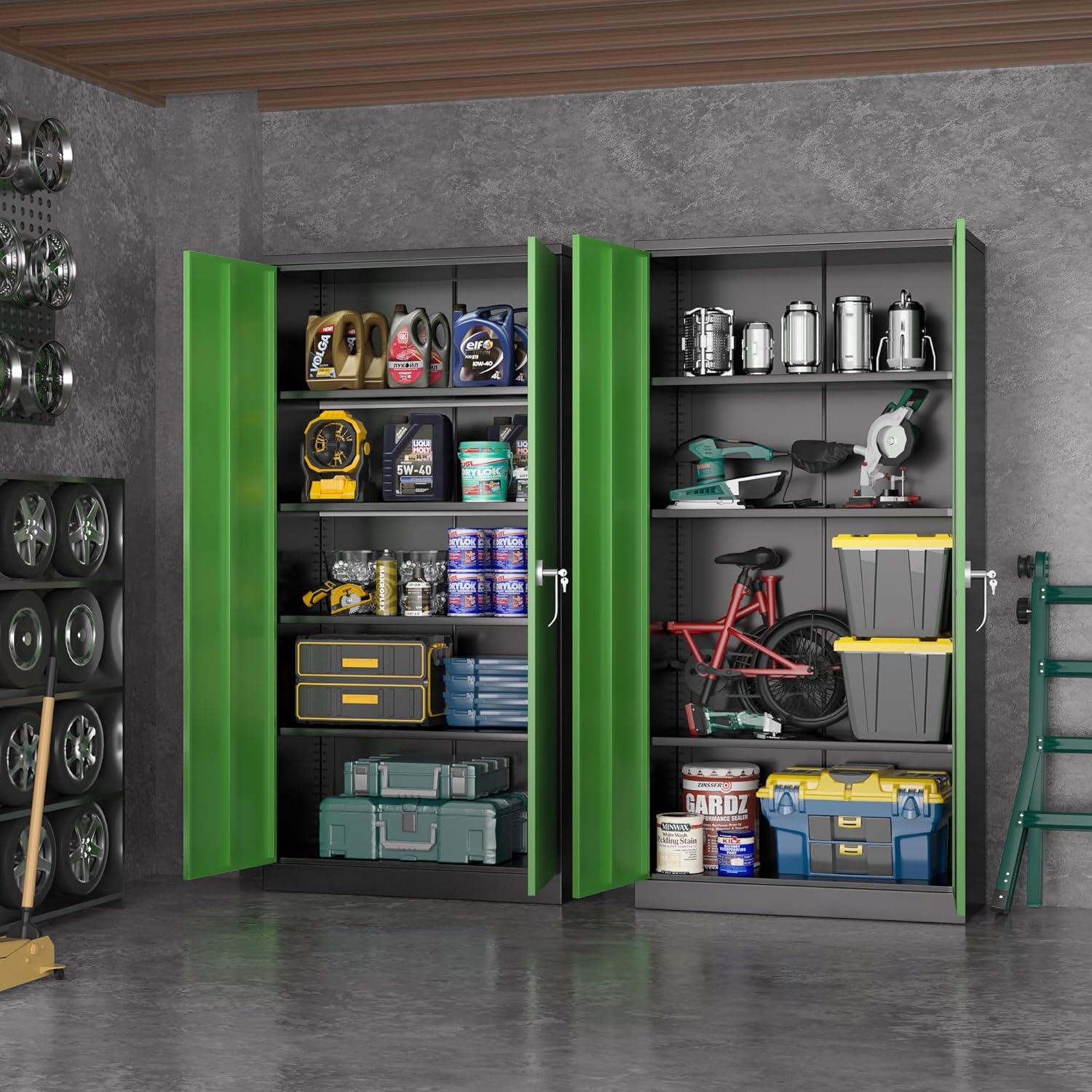 Greenvelly Metal Garage Storage Cabinet, Lockable Metal Cabinets with 2 Doors and Shelves,36”Steel Storage Locking Counter Cabinet for Office,Garage,Kitchen,Home,School(Grey White)(Black Green)
