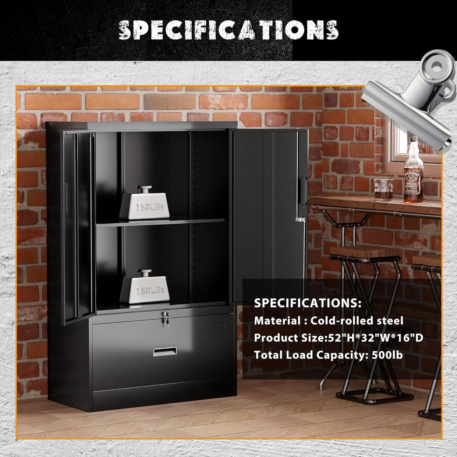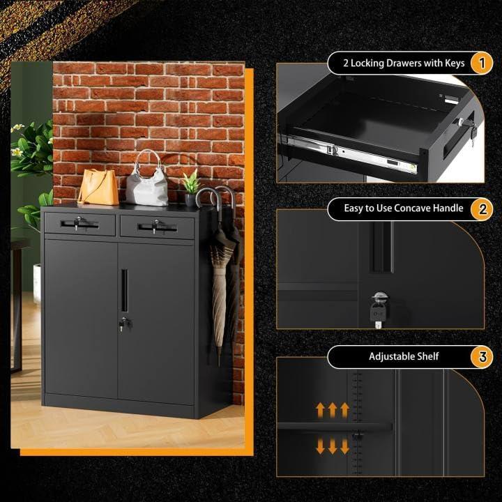 [Excellent Space&Multipurpose]:Greenvelly metal storage cabinet(36″Hx16″D x32″W)and possess 2 adjustable Shelves and lock doors. The metal lockable cabinet is easy to adjust shelves.Each shelf could hold 180 lbs.Suitable space can be planned according to the size of the goods placed .Metal garage storage locking cabinet is suit for storing office files, sporting goods,groceries,gifts.