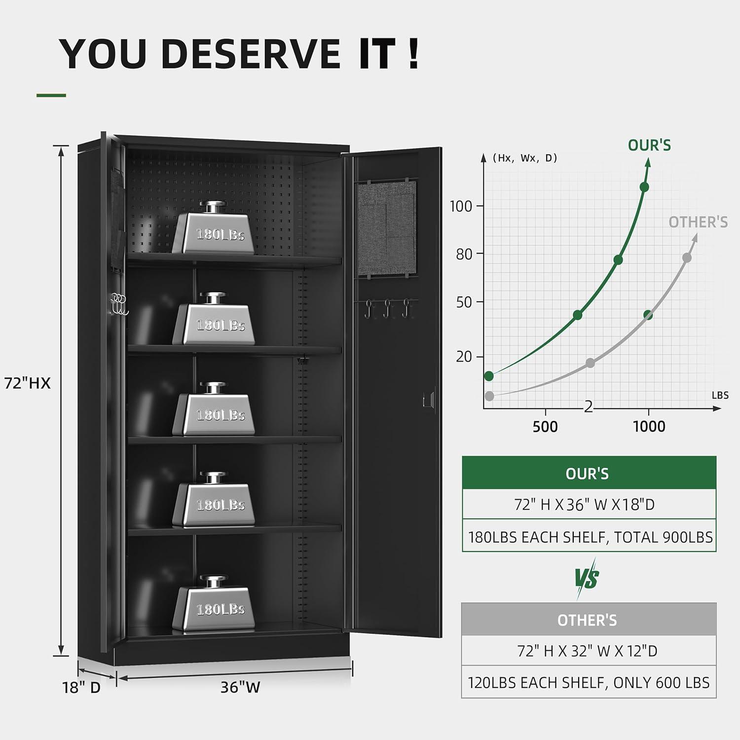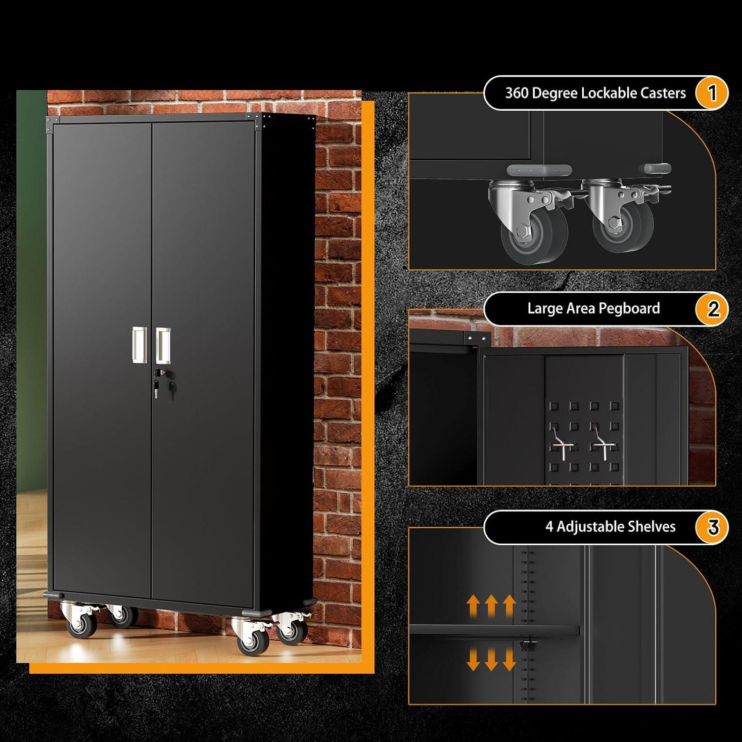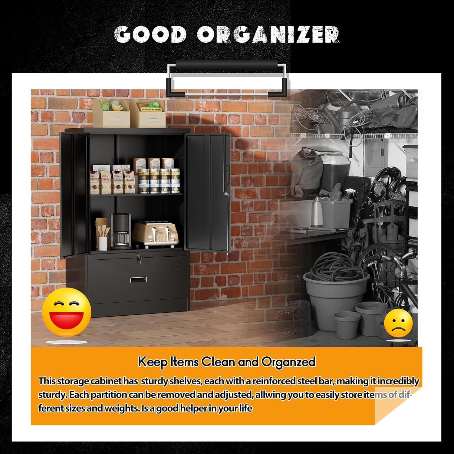 [Easy Assemble]:Greenvelly is a professional seller of specialized black metal cabinets with doors and shelves.After years of research, we know that a number of our customers experience installation problems.Thus Metal storage cabinets provide paper and video assembly instructions,which we are constantly updating content . Even if you don’t have DIY experience, you could easily assemble it.