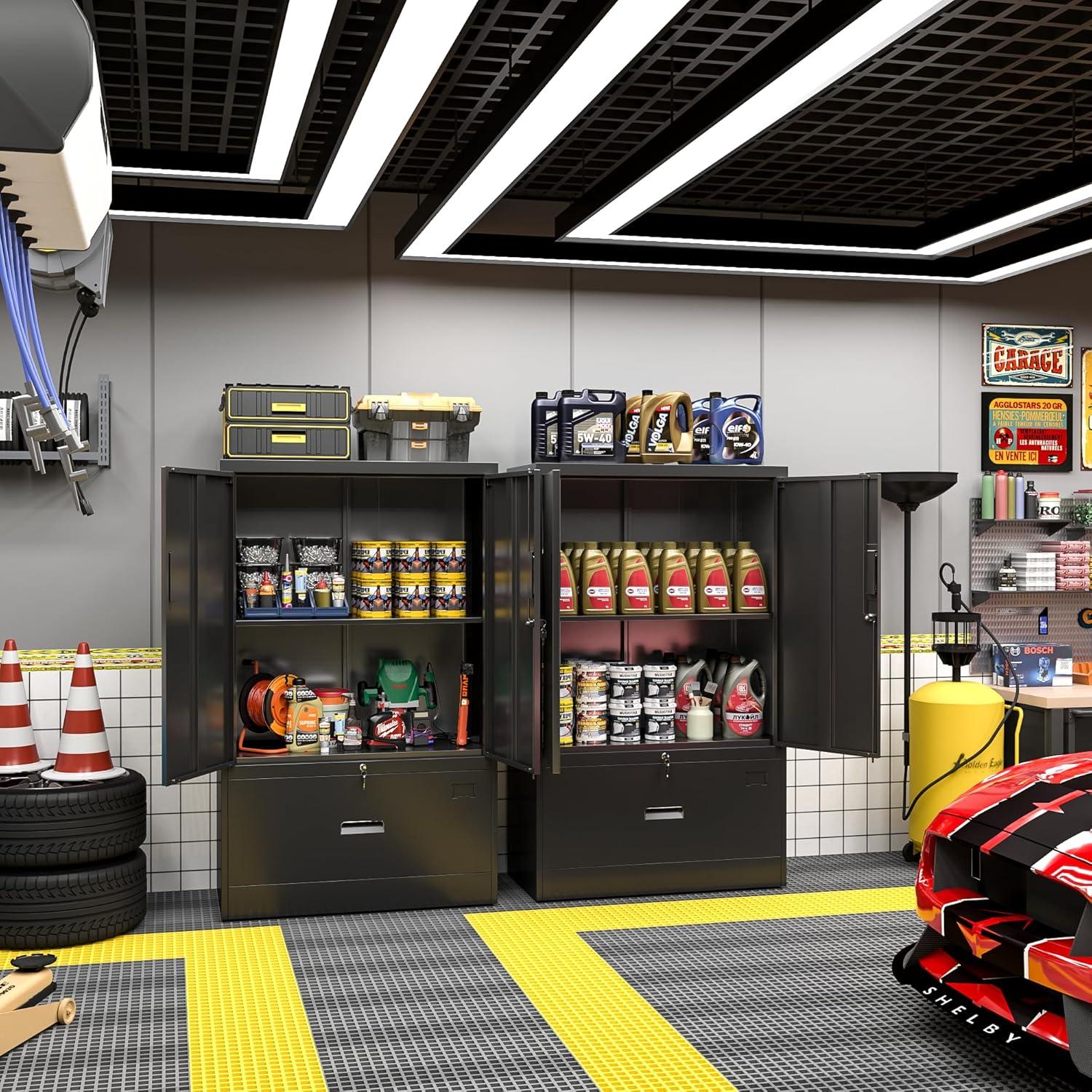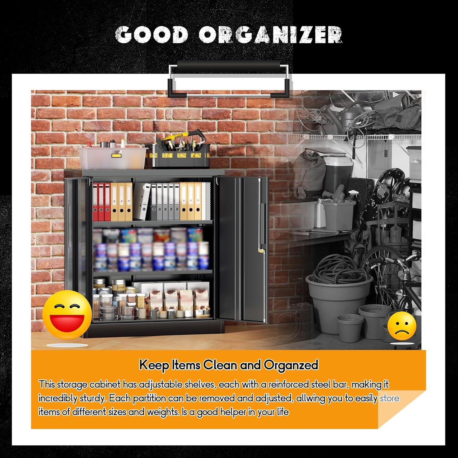 Greenvelly Metal Garage Storage Cabinet, Lockable Metal Cabinets with 2 Doors and Shelves,36”Steel Storage Locking Counter Cabinet for Office,Garage,Kitchen,Home,School(Grey White)(Black)