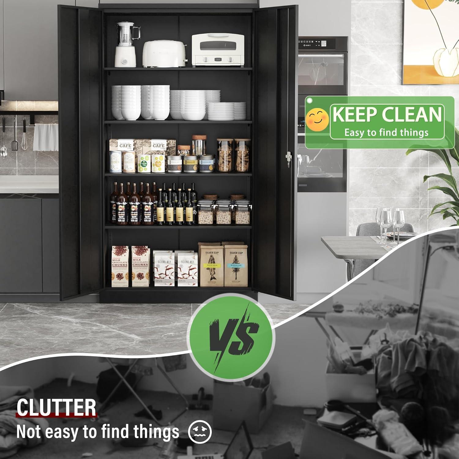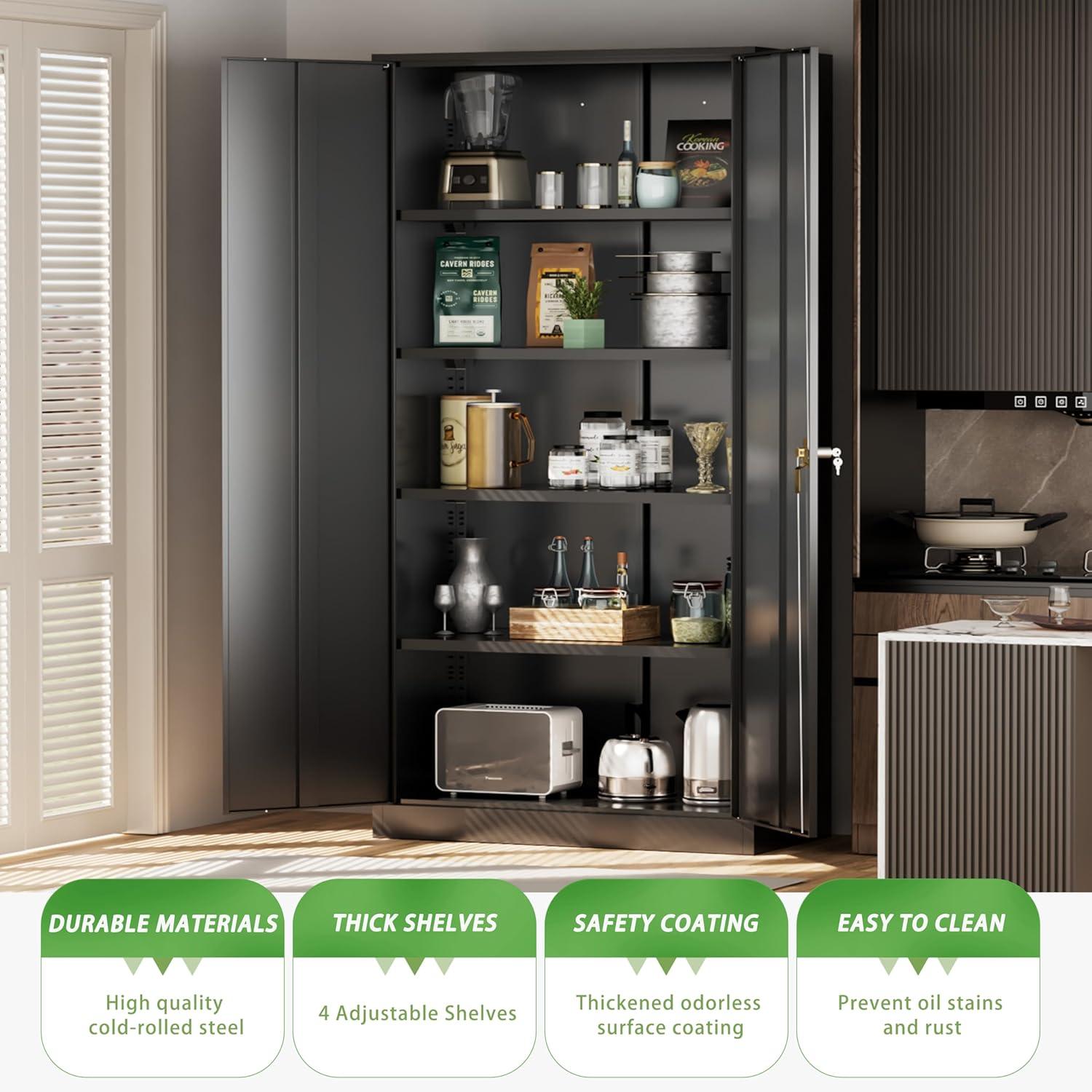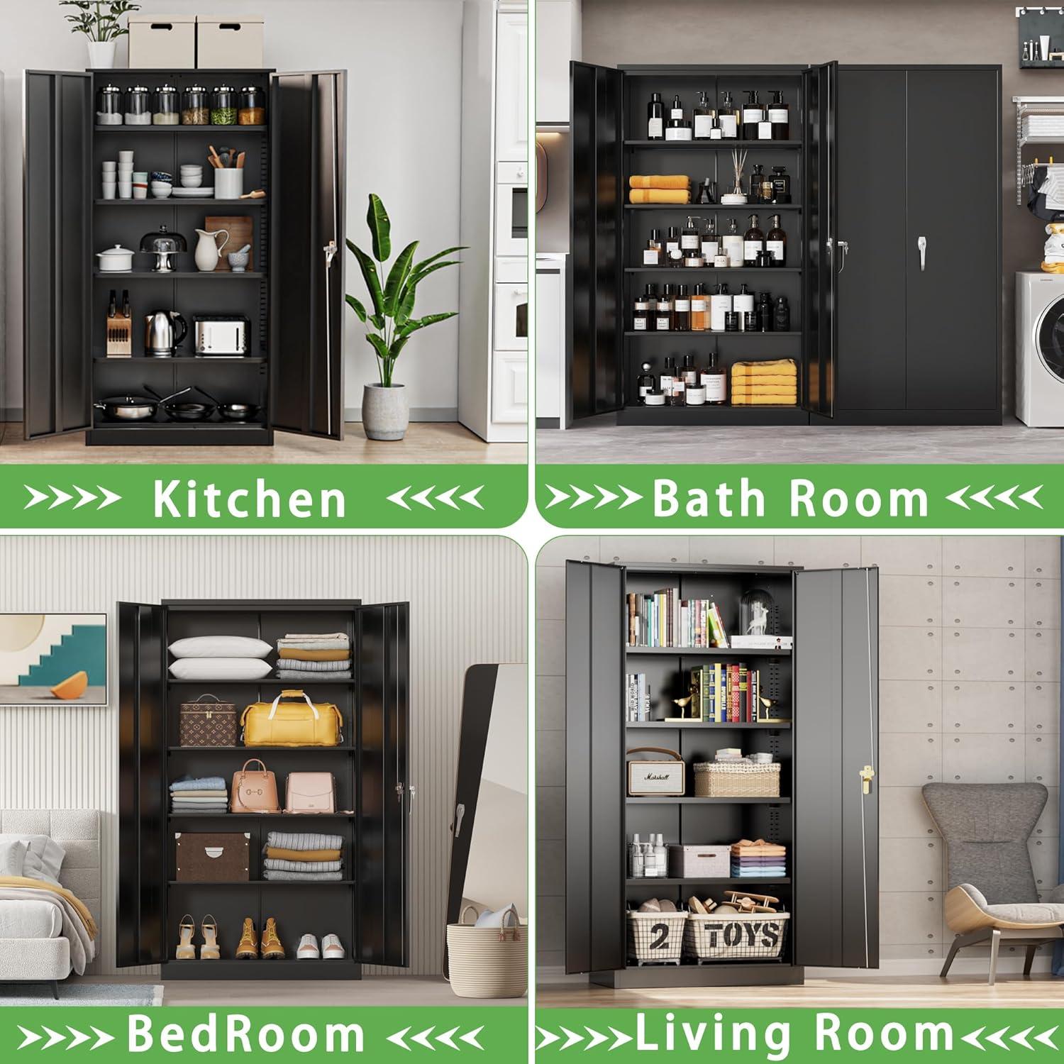 Greenvelly Metal Storage Cabinet, 63" H Locking Metal Storage Cabinet with Doors and 4 Shelves, Lockable Steel Cabinets for Kitchen, Bedroom, Living Room, Office (Black)(Black-1)
