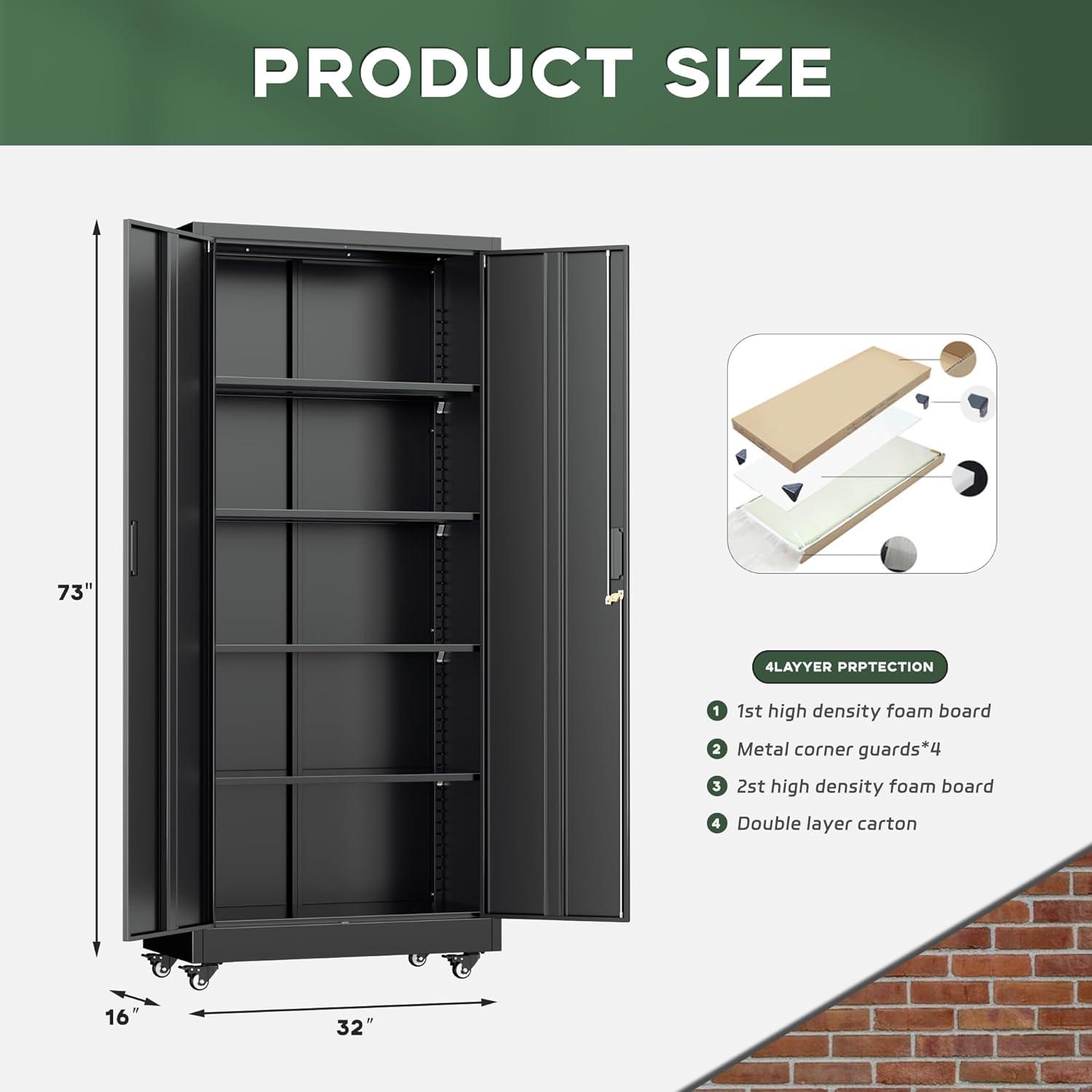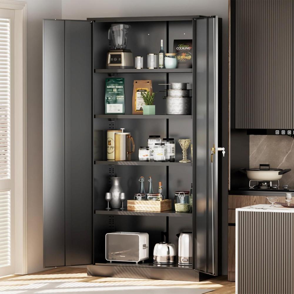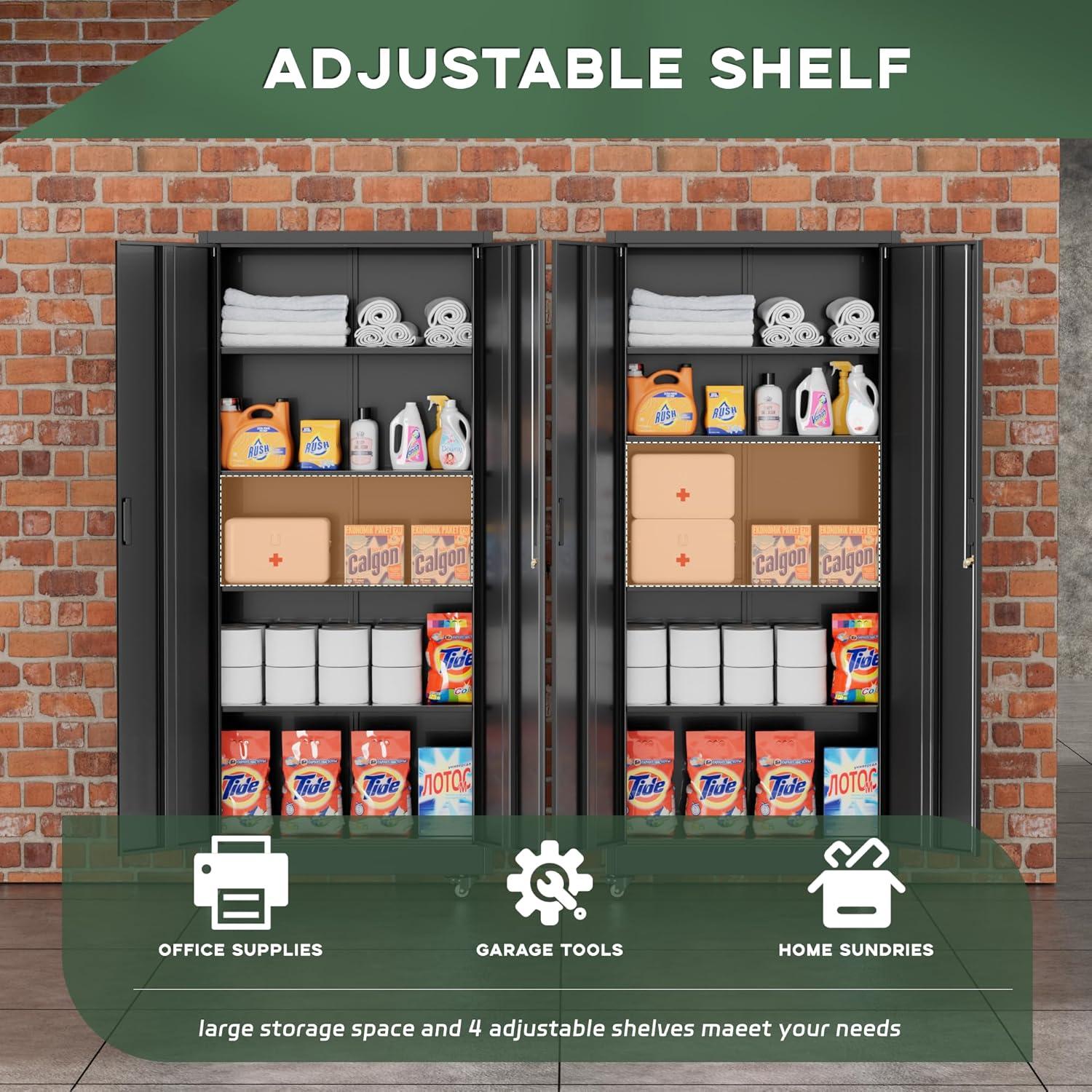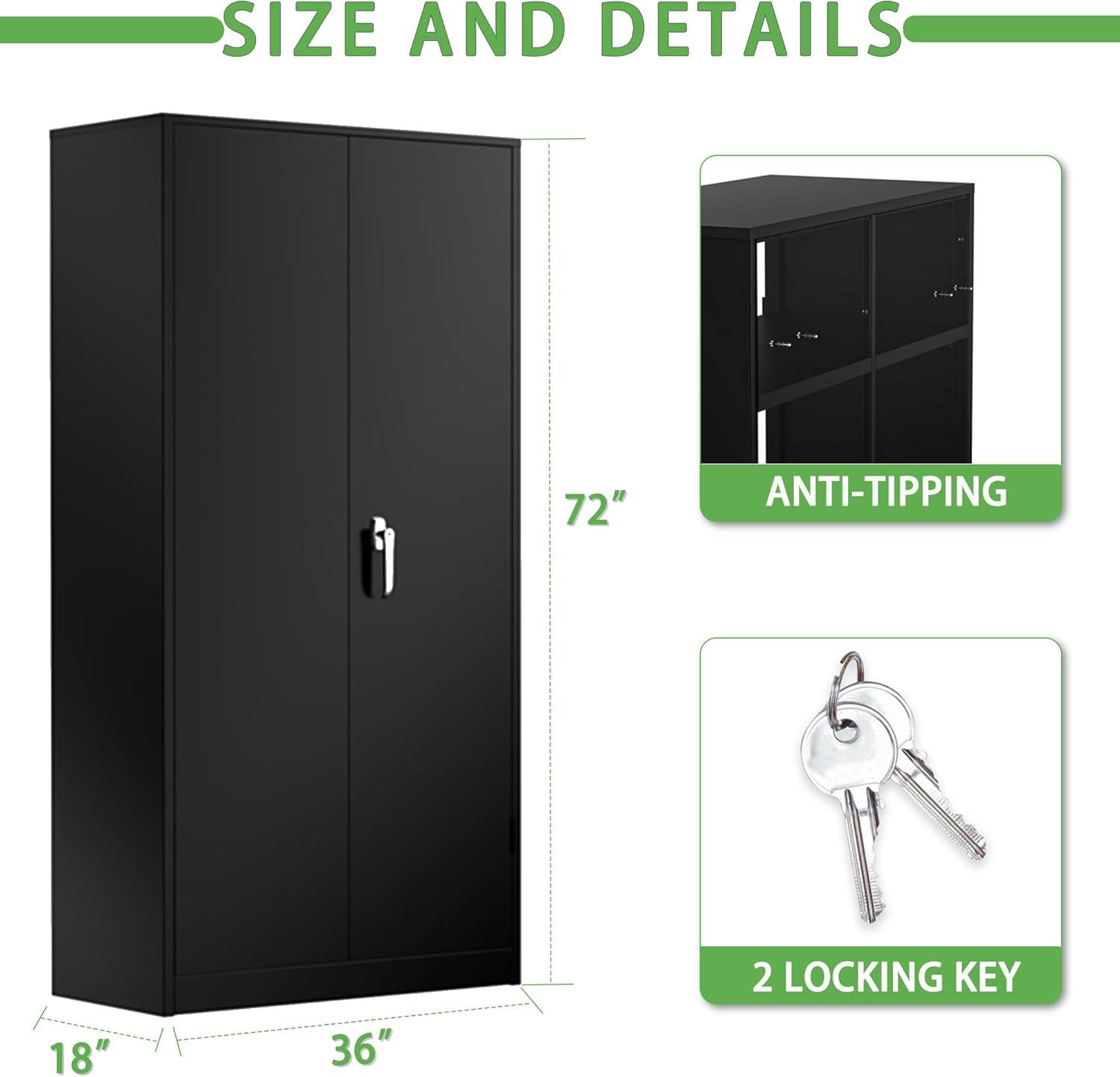 Greenvelly Metal Storage Cabinet, 63" H Locking Metal Storage Cabinet with Doors and 4 Shelves, Lockable Steel Cabinets for Kitchen, Bedroom, Living Room, Office (Black)(Black-1)