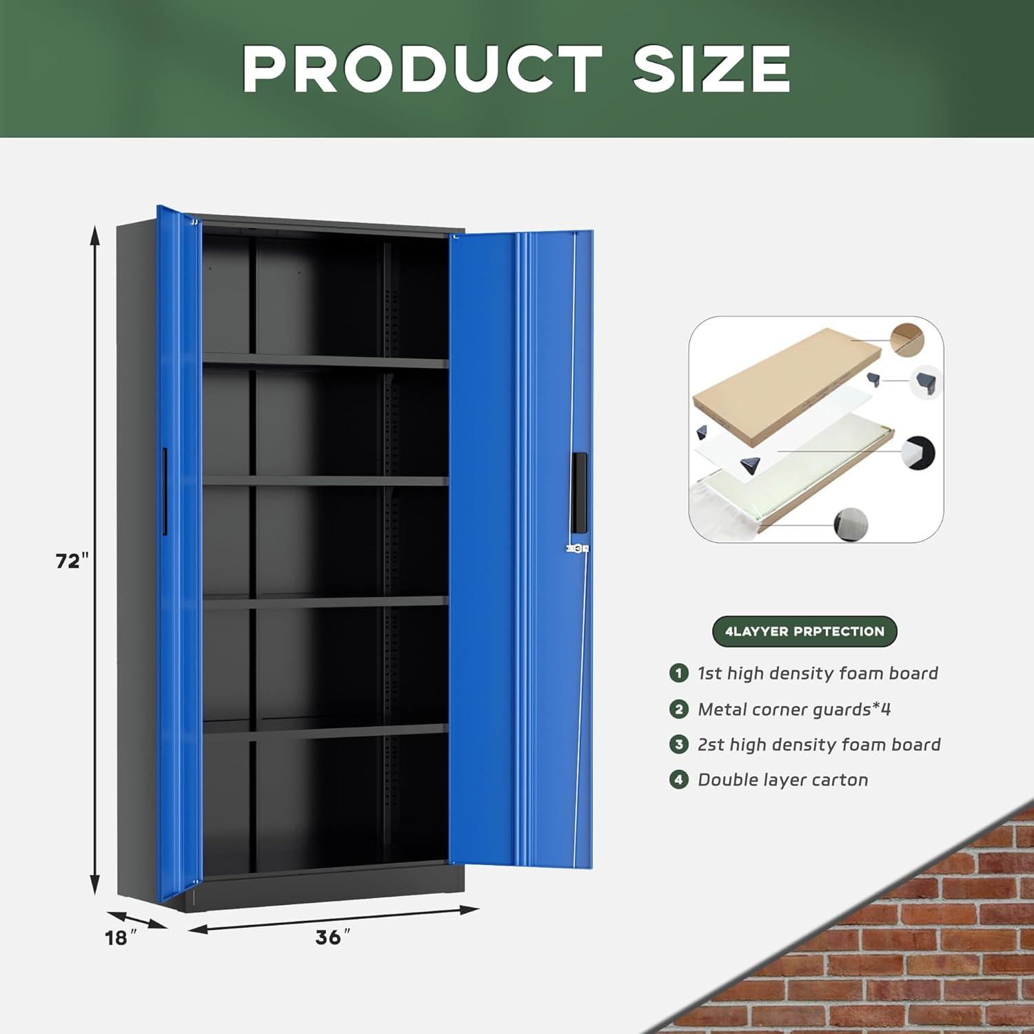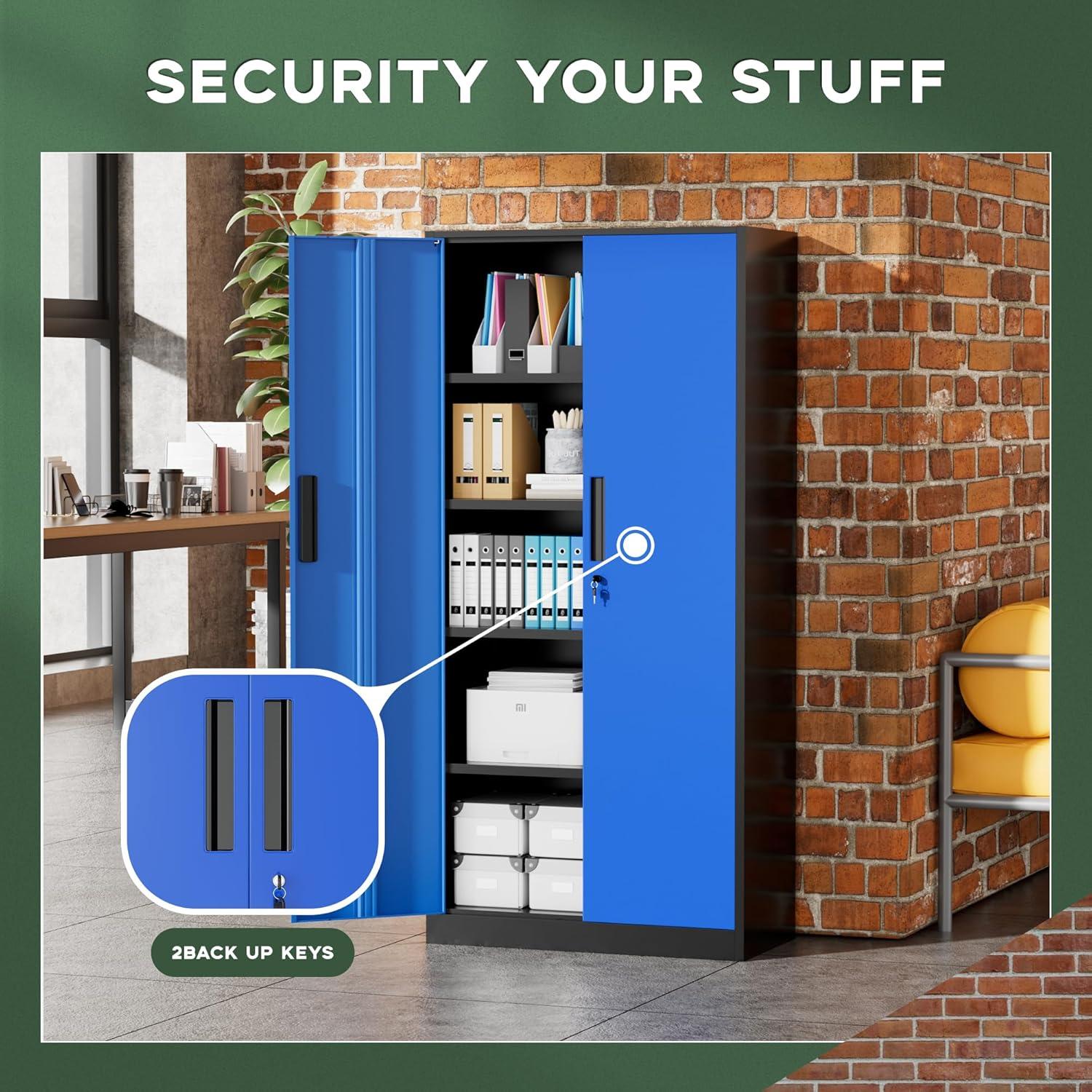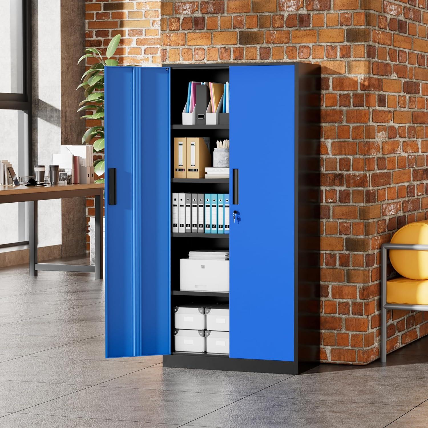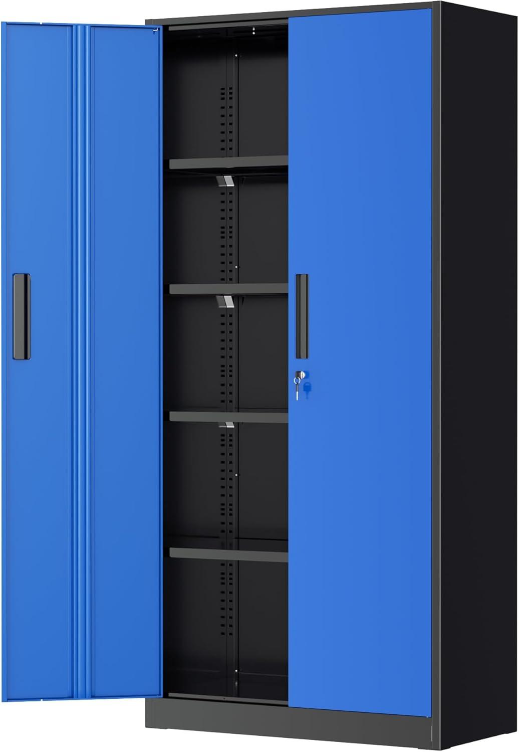 Greenvelly Metal Storage Cabinet, 63" H Locking Metal Storage Cabinet with Doors and 4 Shelves, Lockable Steel Cabinets for Kitchen, Bedroom, Living Room, Office (Black)(Blue)