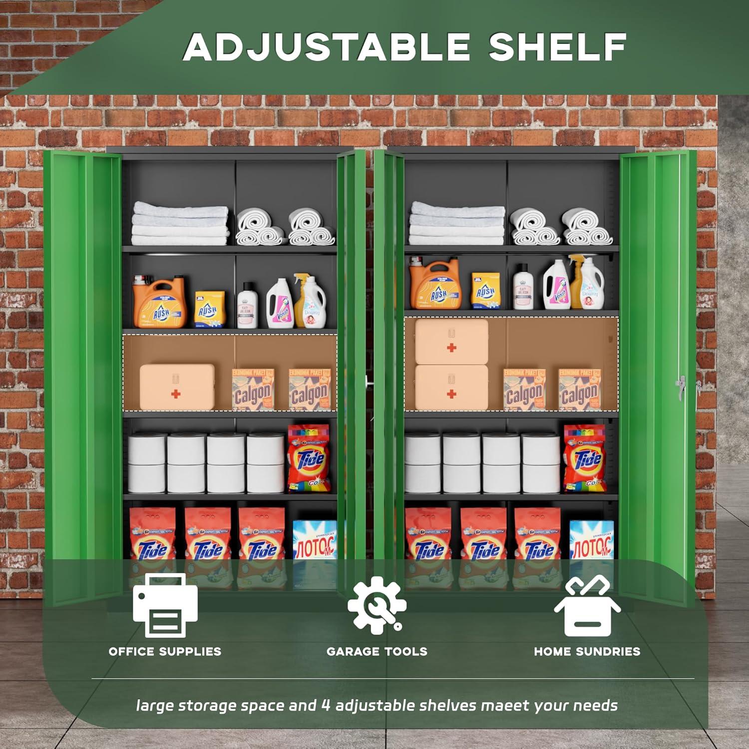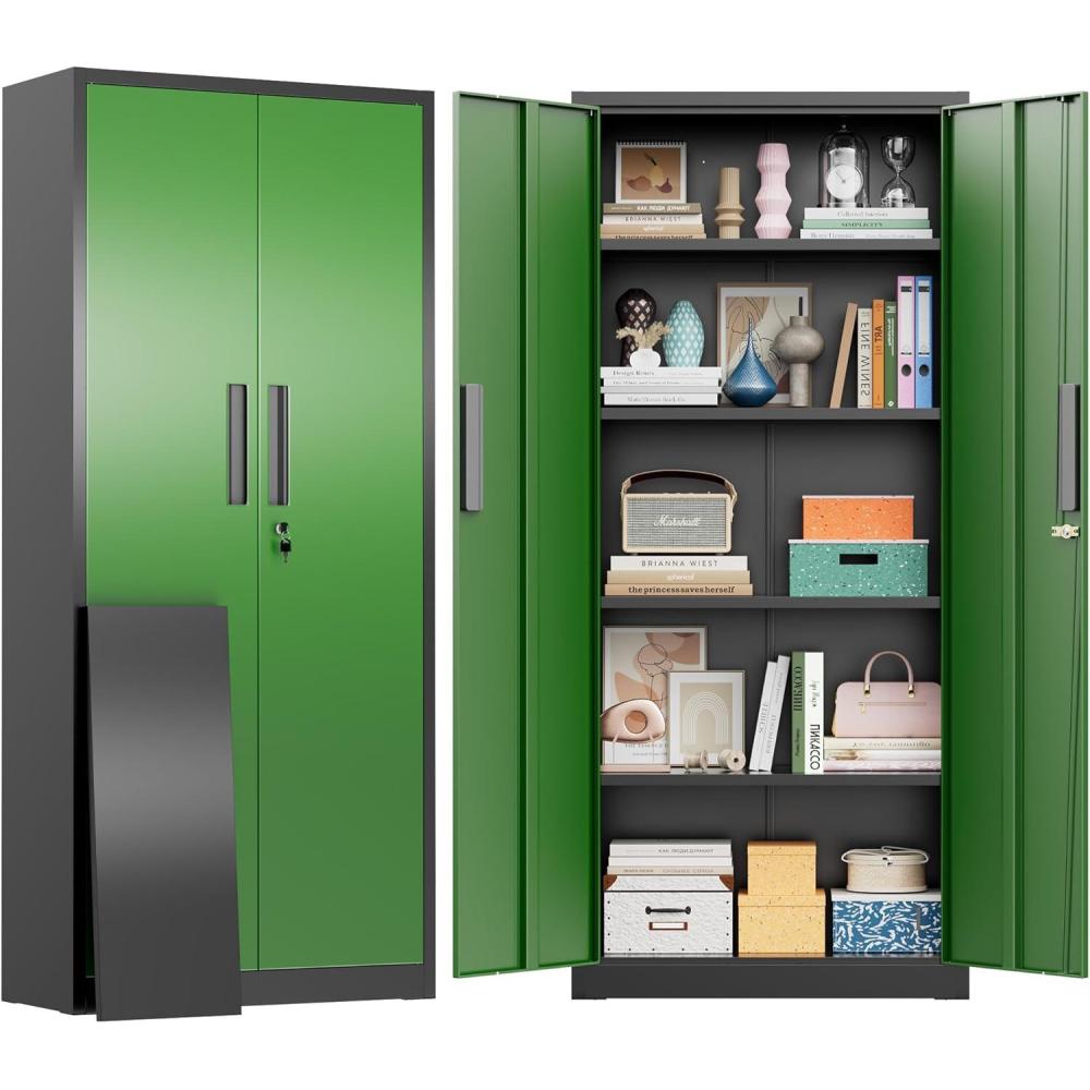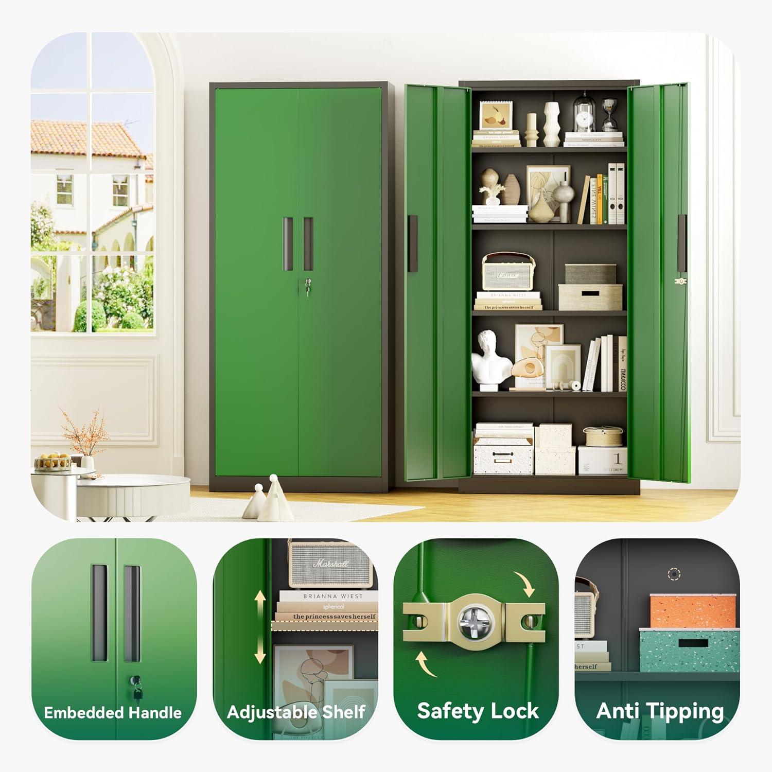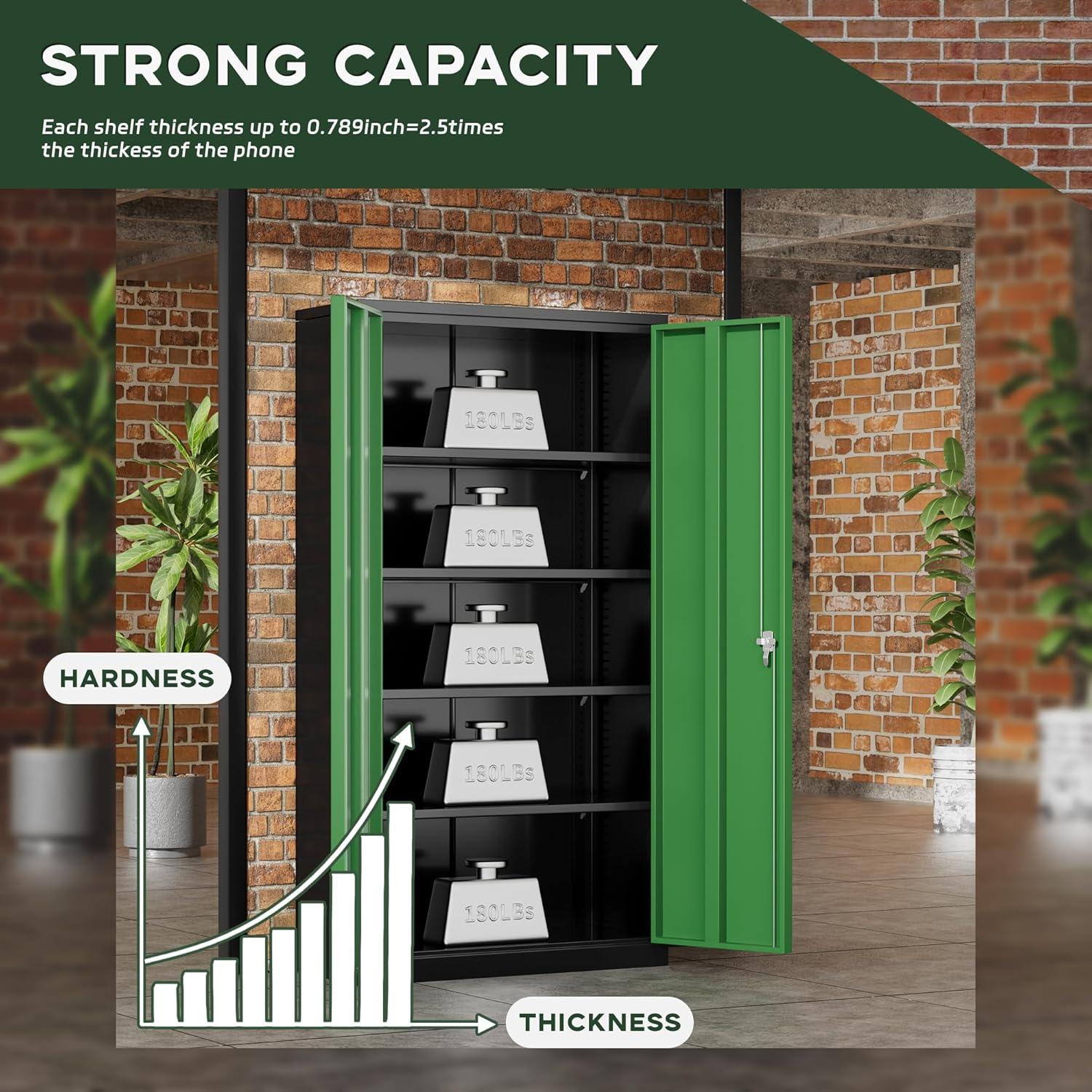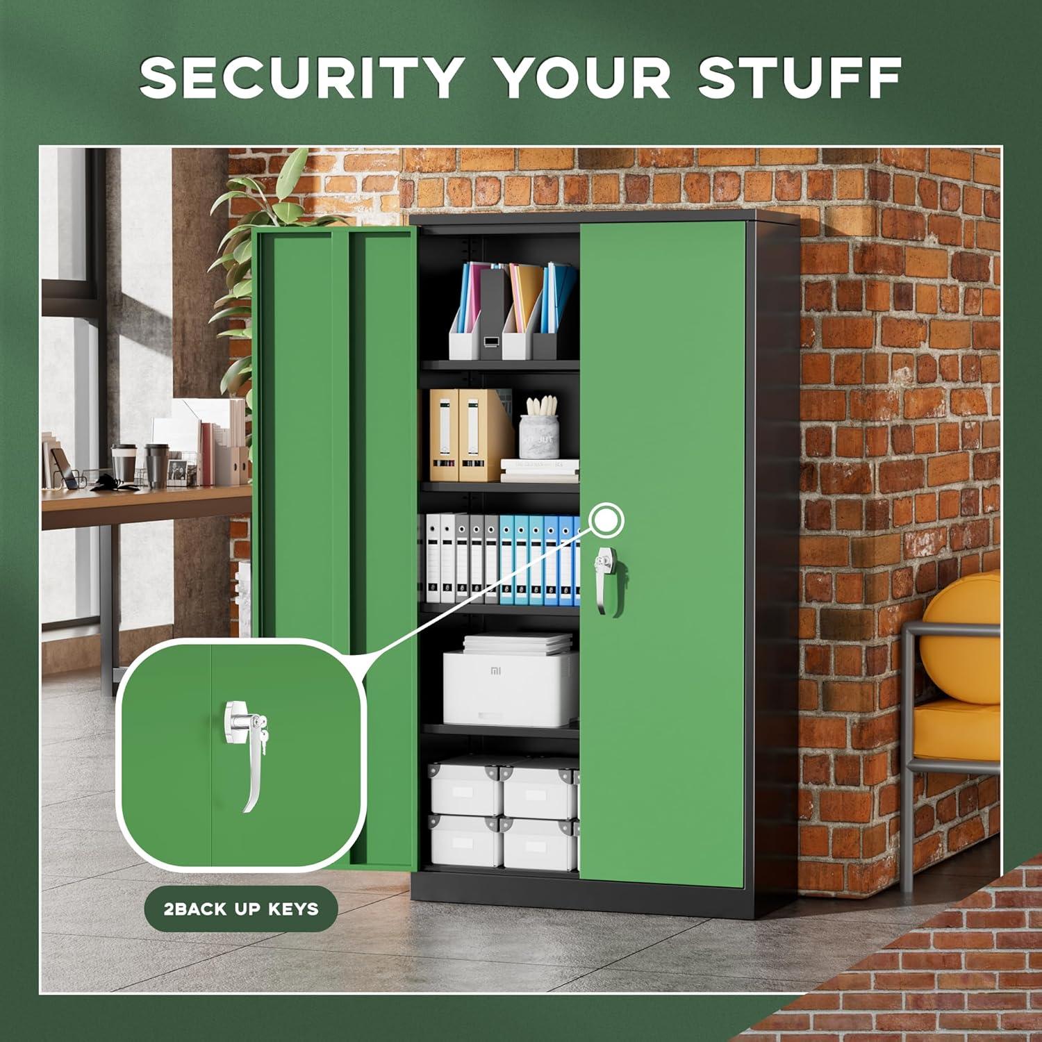 Greenvelly Metal Storage Cabinet, 63" H Locking Metal Storage Cabinet with Doors and 4 Shelves, Lockable Steel Cabinets for Kitchen, Bedroom, Living Room, Office (Black)(Green)