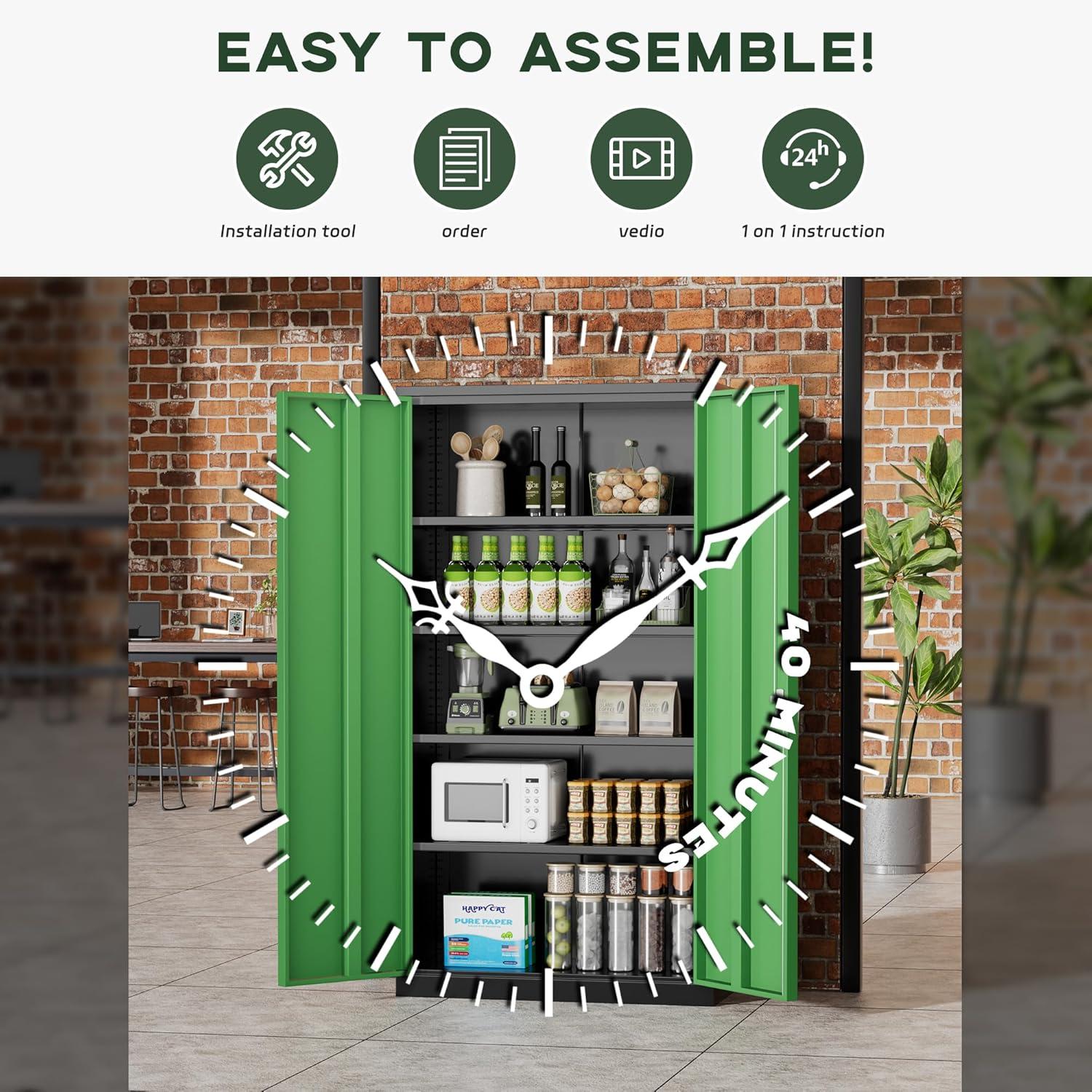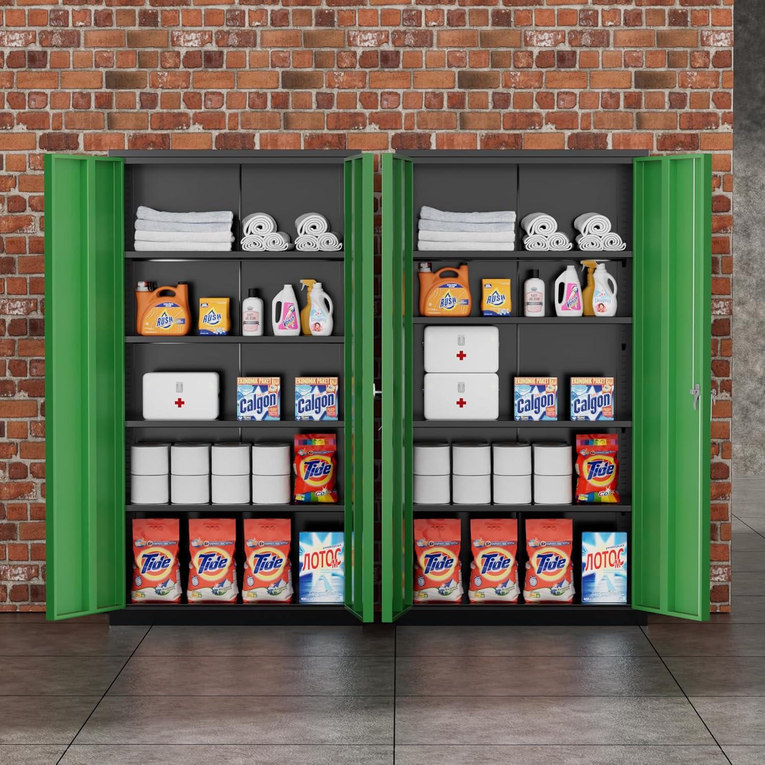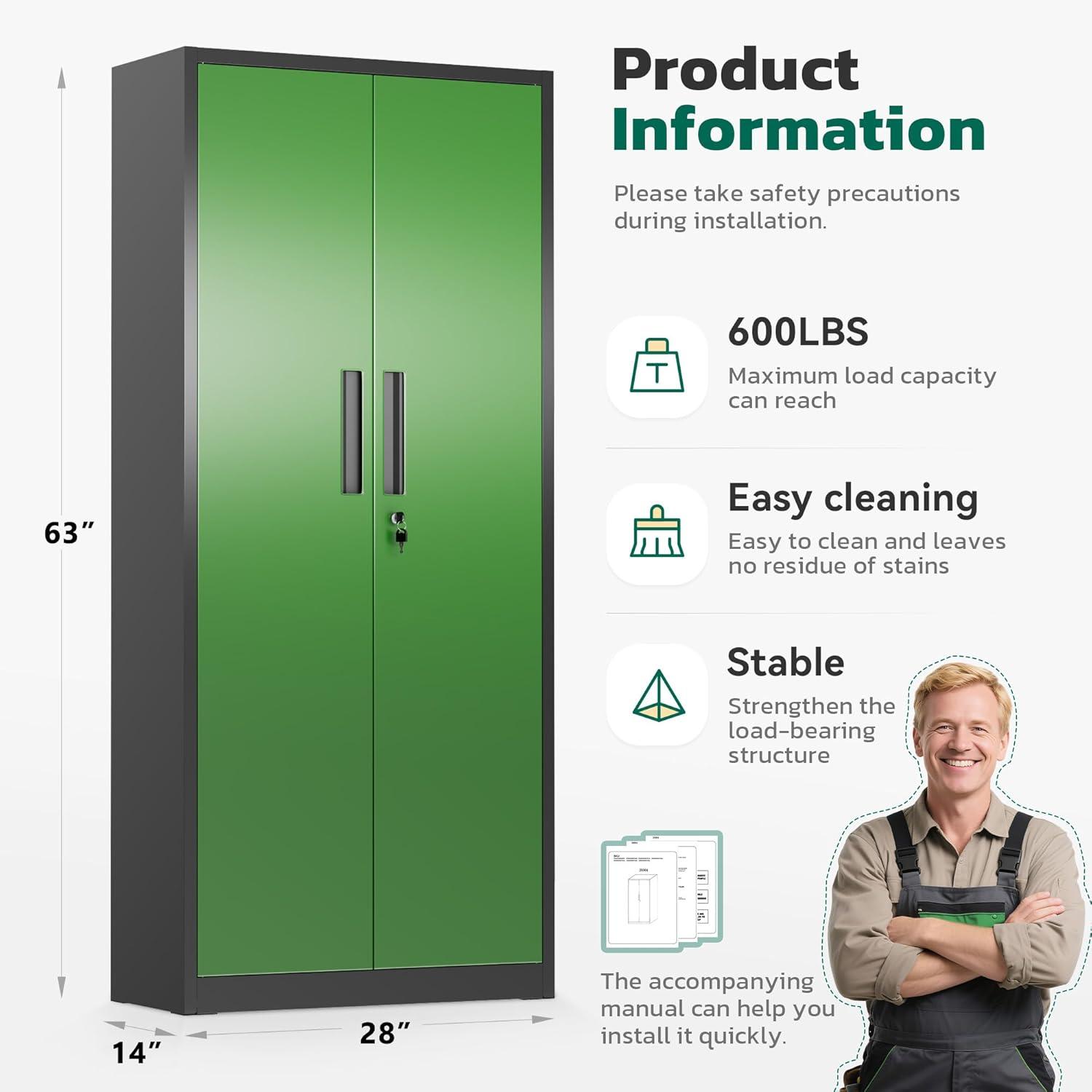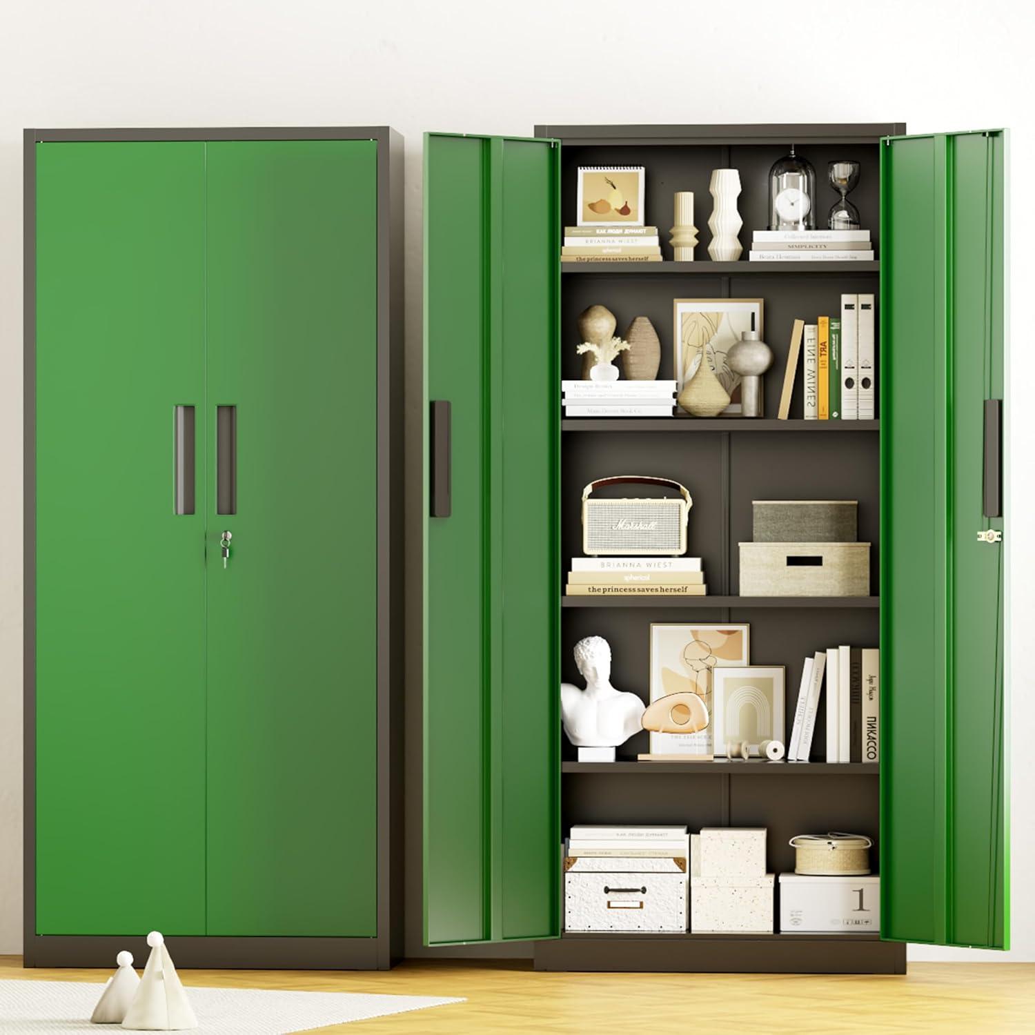 Greenvelly Metal Storage Cabinet, 63" H Locking Metal Storage Cabinet with Doors and 4 Shelves, Lockable Steel Cabinets for Kitchen, Bedroom, Living Room, Office (Black)(Green)