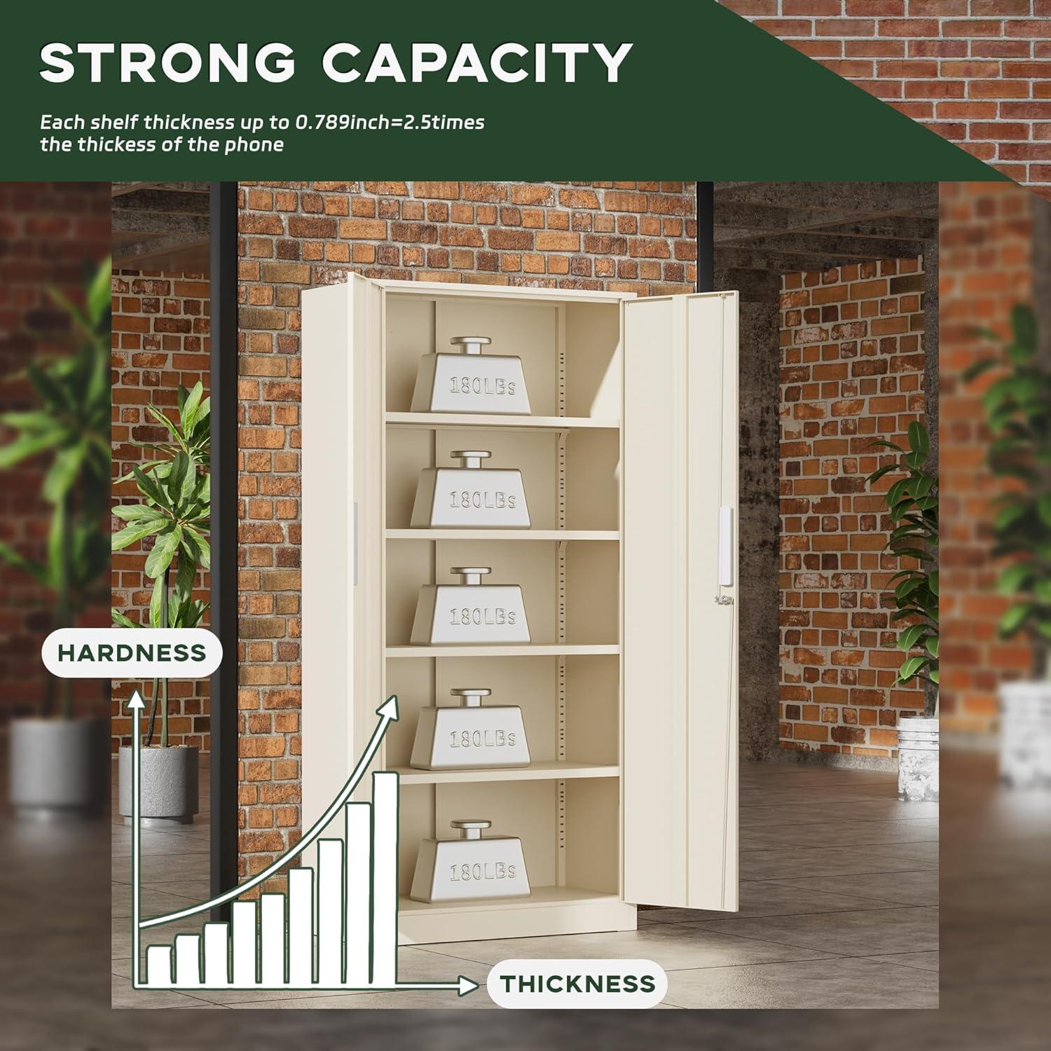 【Durable Metal Material】Greenvelly metal cabinet is made of thickened cold-rolled steel plates, and each partition can support up to 120 pounds of weight, providing stable support for your items. The surface of the metal cabinet is treated with powder coating technology, which is rust proof and wear-resistant, making it convenient for you to store items for a long time.