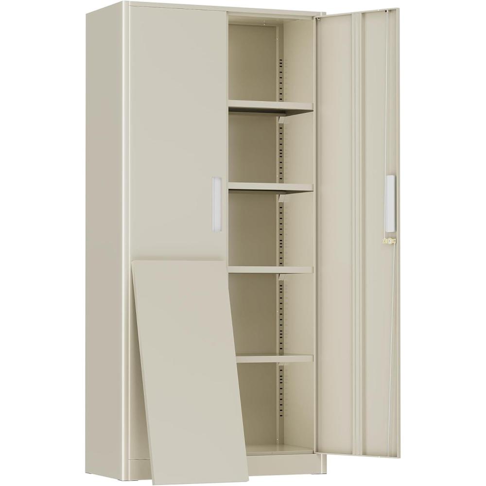 Greenvelly Metal Storage Cabinet, 63″ H Locking Metal Storage Cabinet with Doors and 4 Shelves, Lockable Steel Cabinets for Kitchen, Bedroom, Living Room, Office (Black)(Grey)