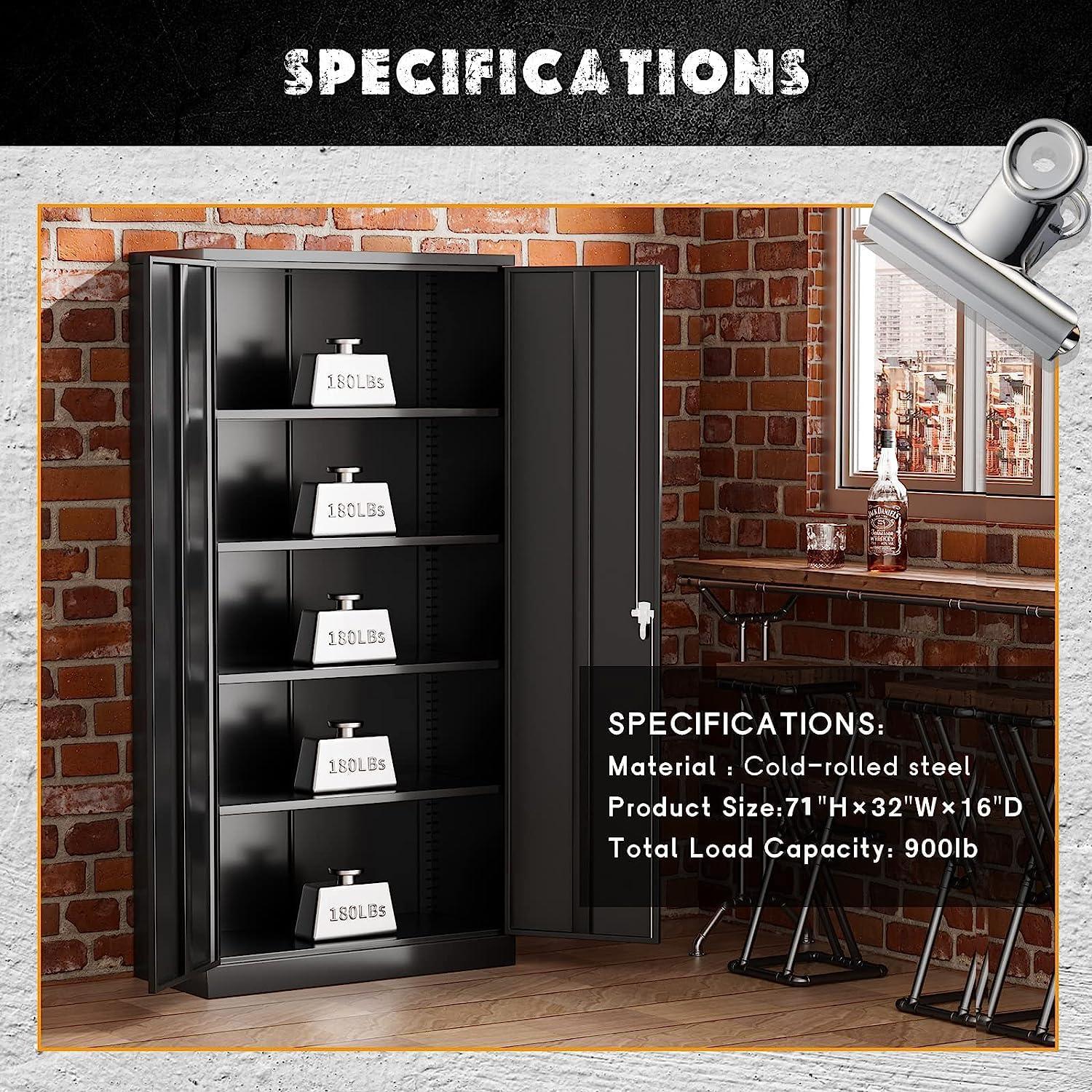 Load-bearing Capacity: Strong and reliable Each of the four shelves of this high cabinet can carry up to 160 pounds, with heavy metal frames that stabilize and protect its contents. Whether you're storing office documents, garage tools, or other large items.