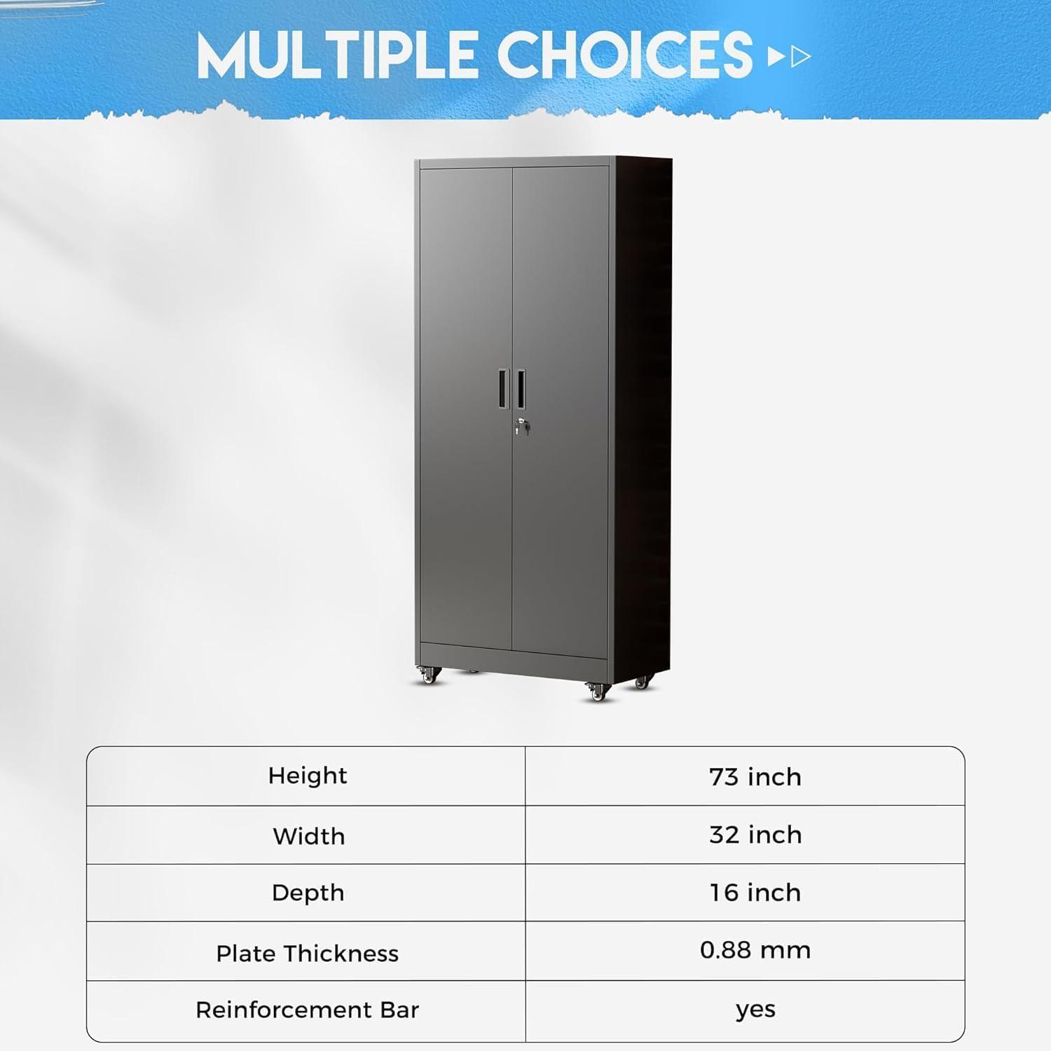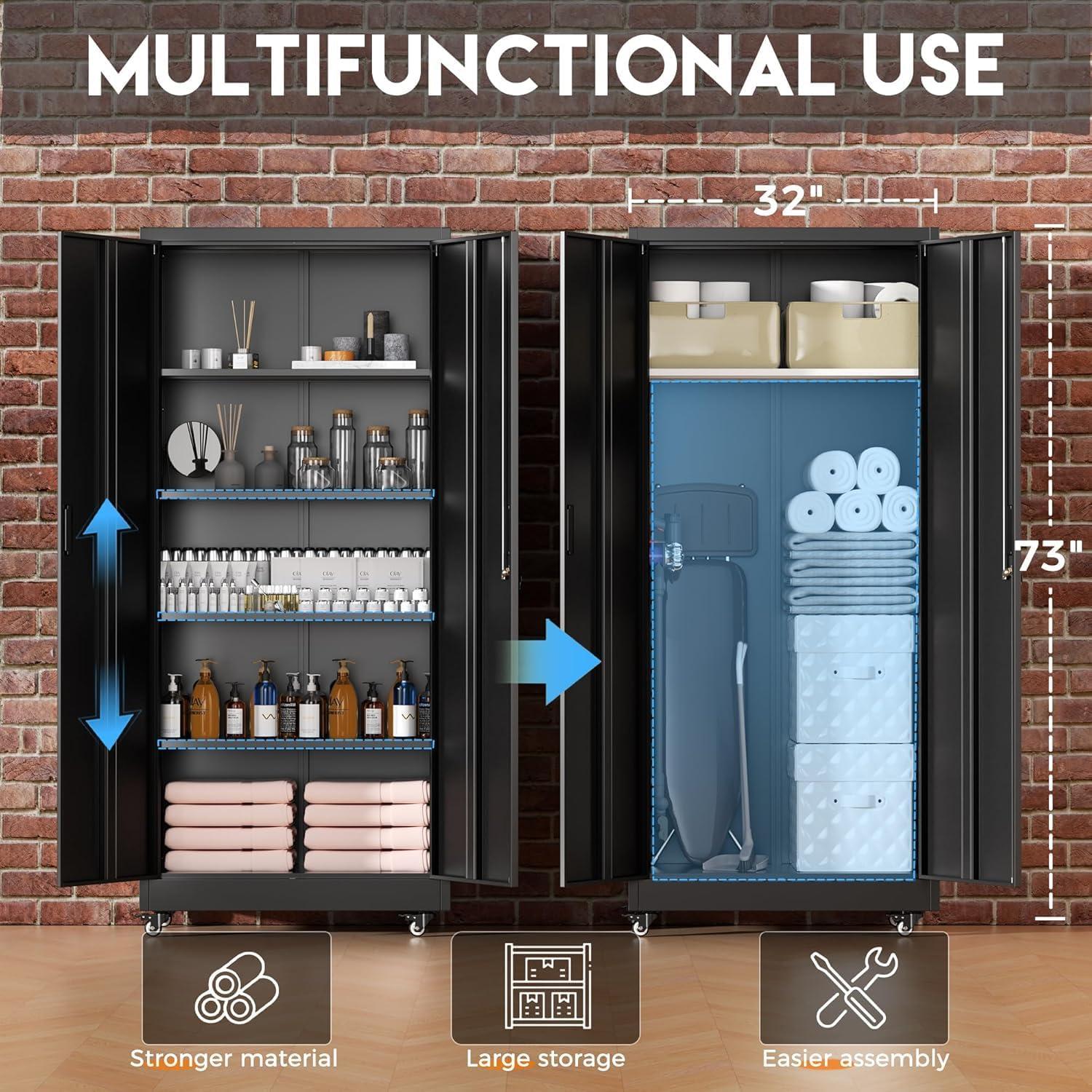 【Excellent Security】The metal storage cabinet have a lockable door with 2 keys and adopt a 3-point locking system, which allows you to store your valuables safely. Both cabinet doors are reinforced with extra steel. Provides greater security for your valuables and important items, allowing for safe storage and access to your tools.