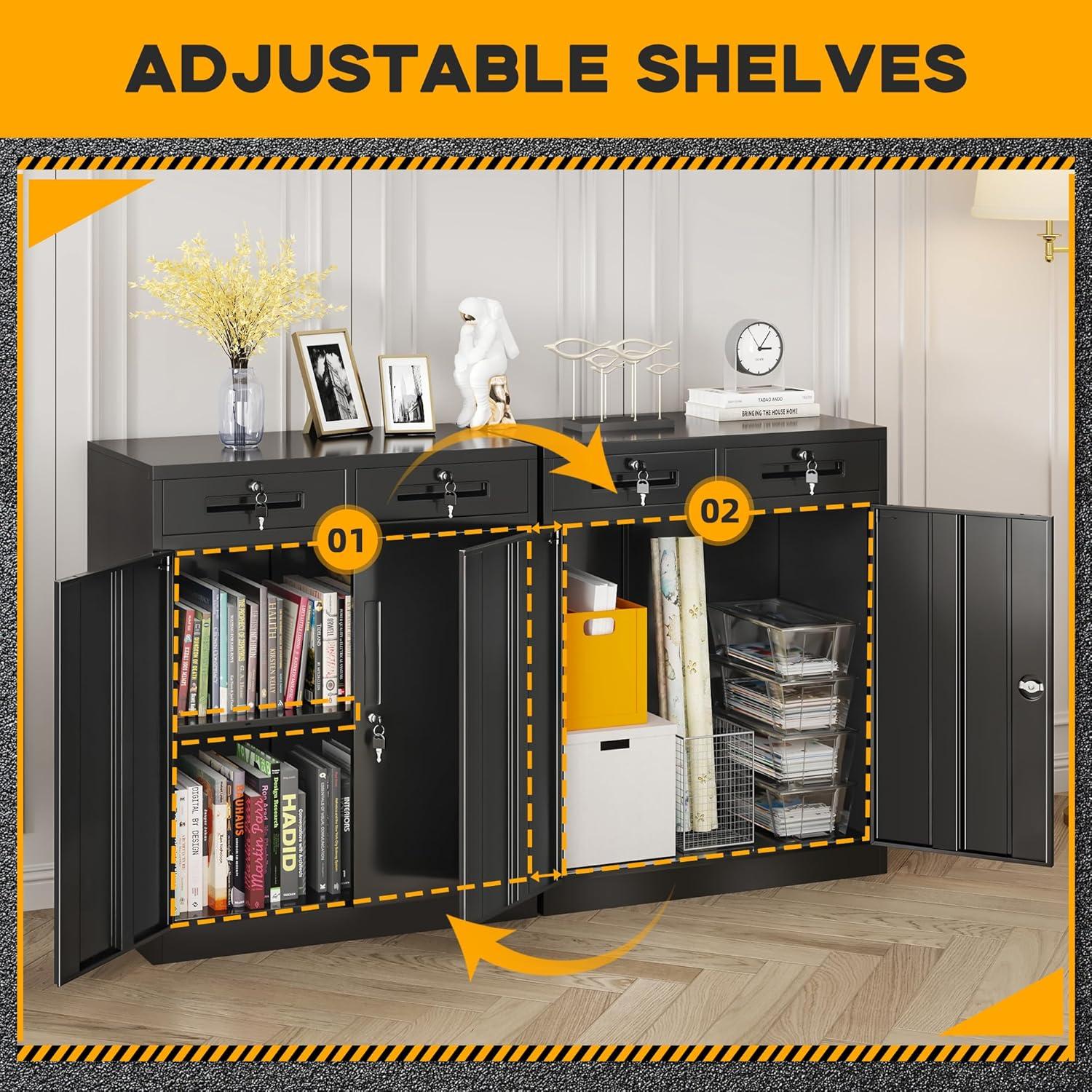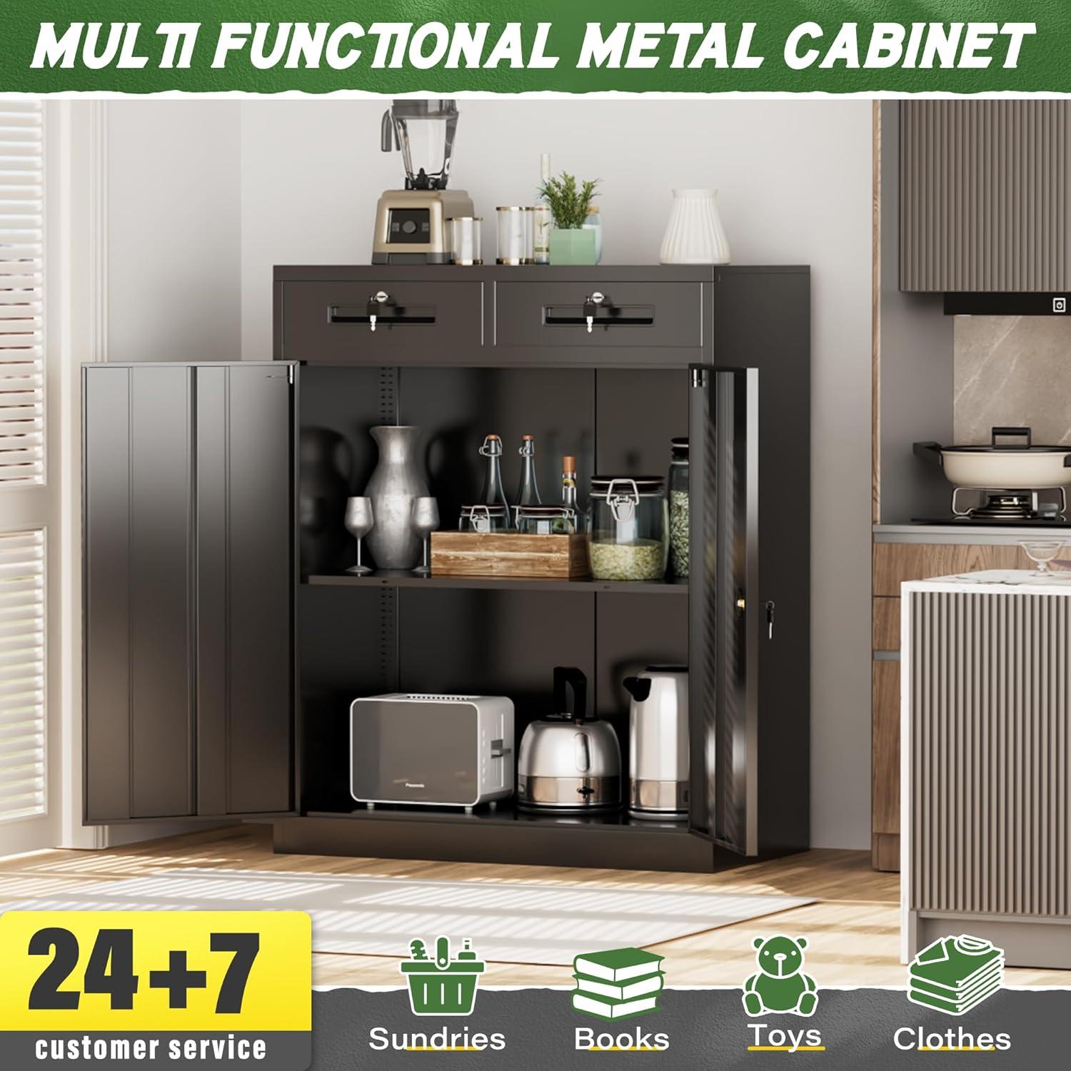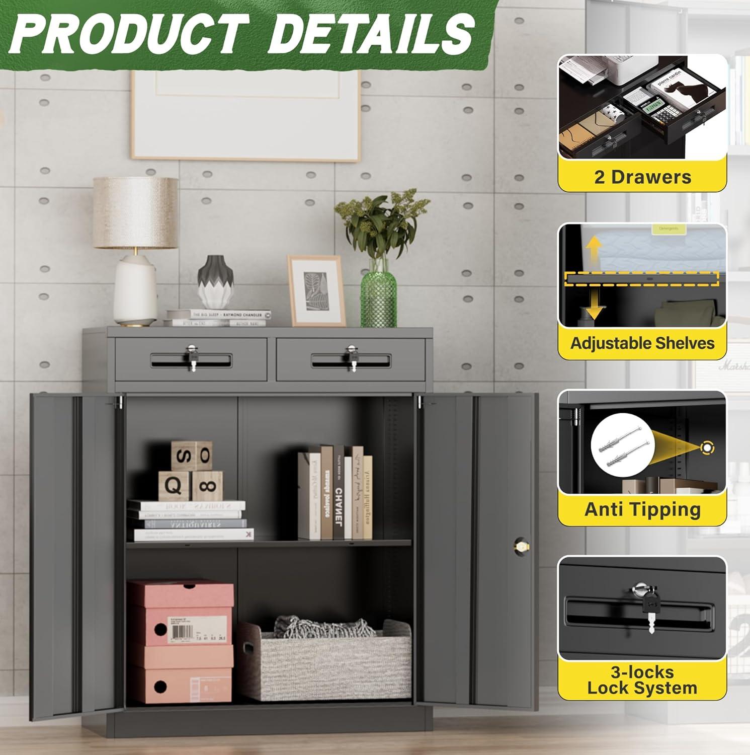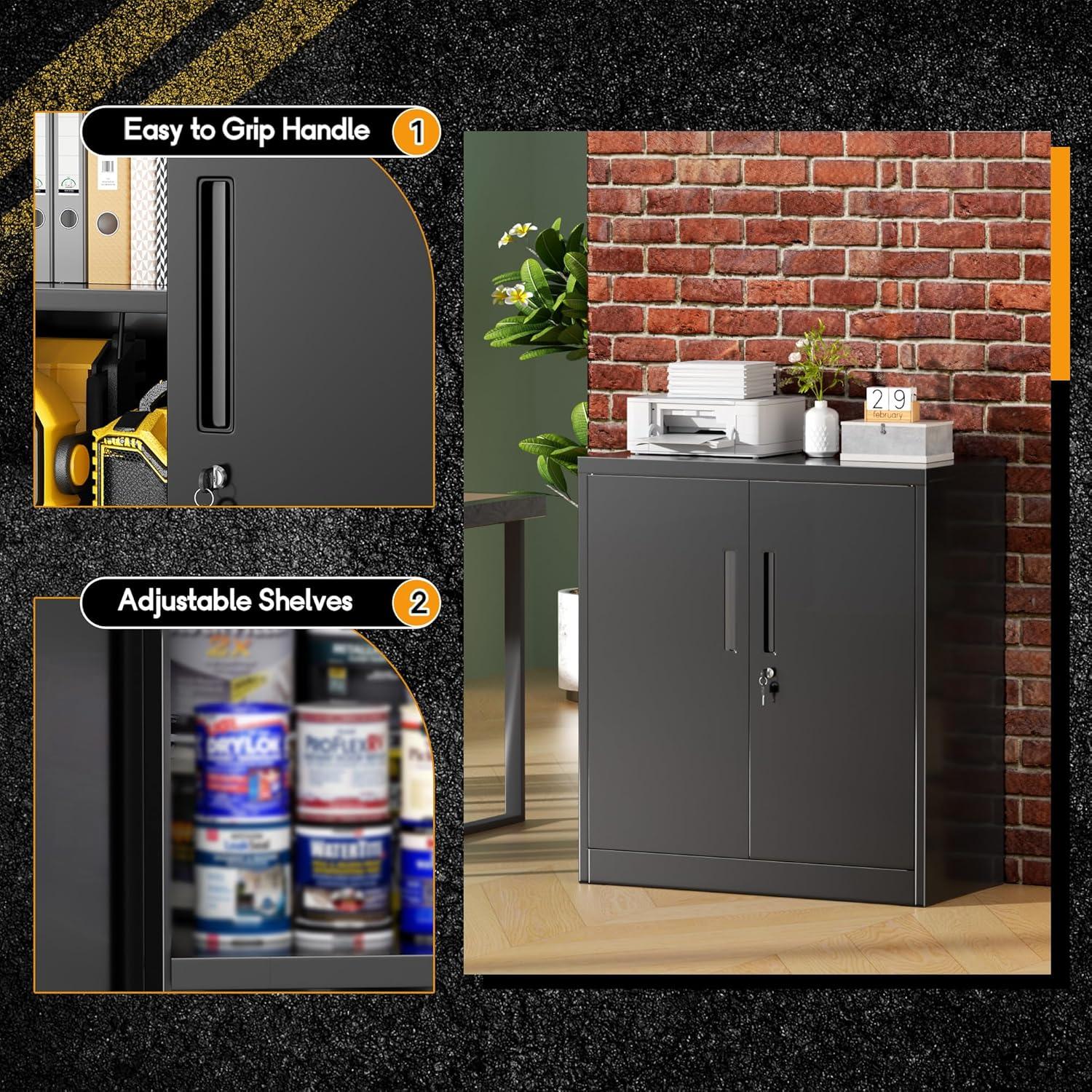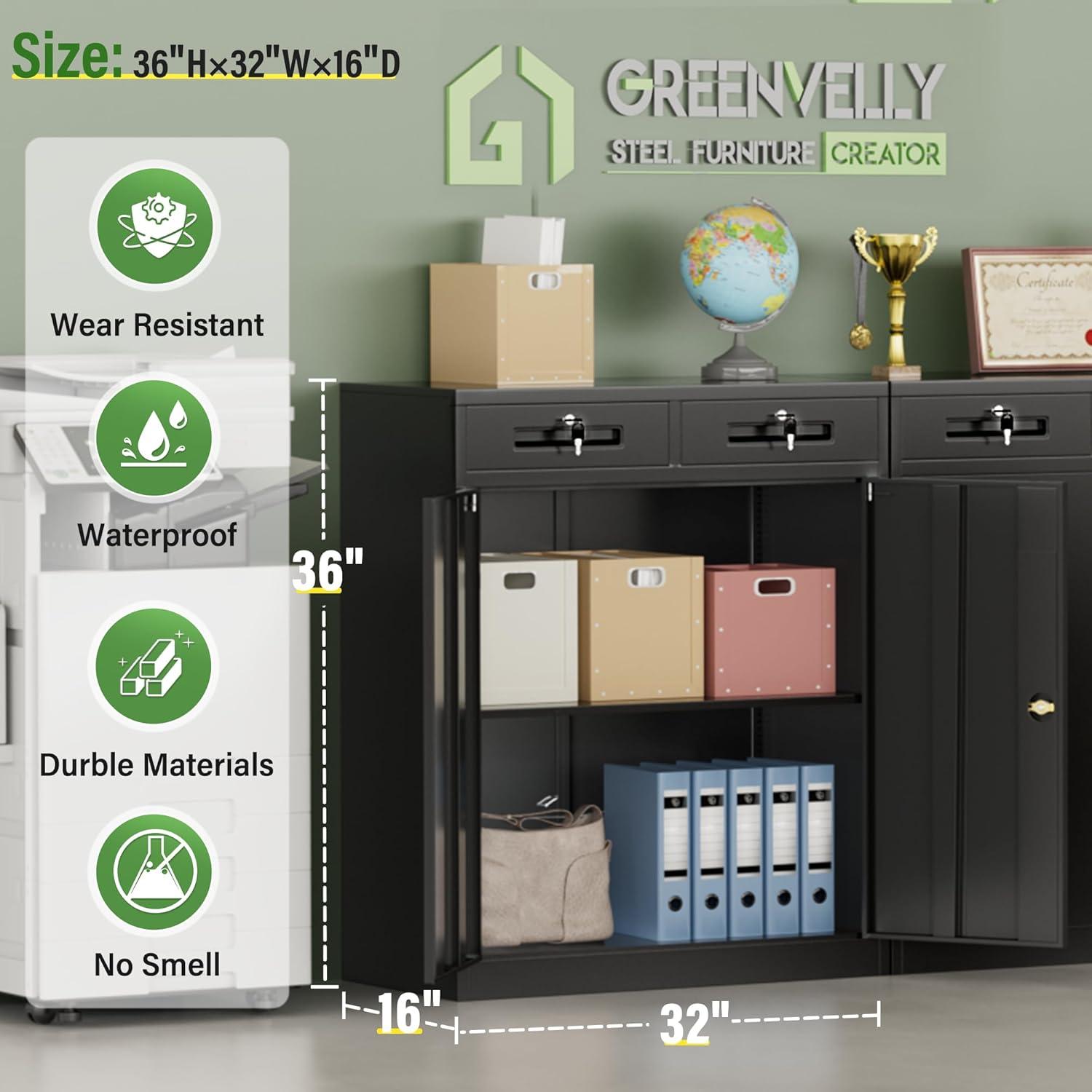Greenvelly Metal Cabinet, 36″ Locking Storage File Cabinet with Doors and Shelves for Office,Home,Gym,School,Kitchen(Dark Grey)(White)