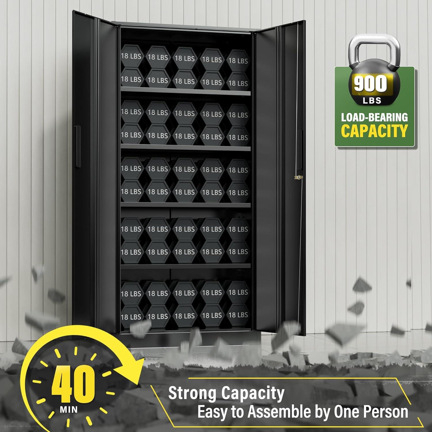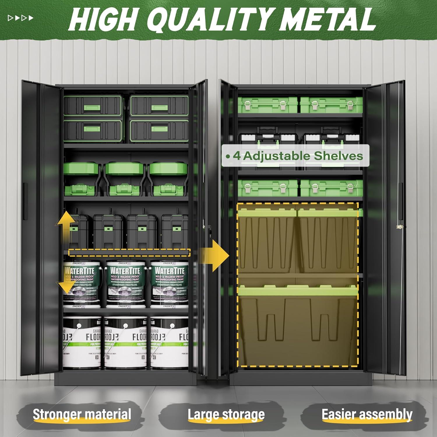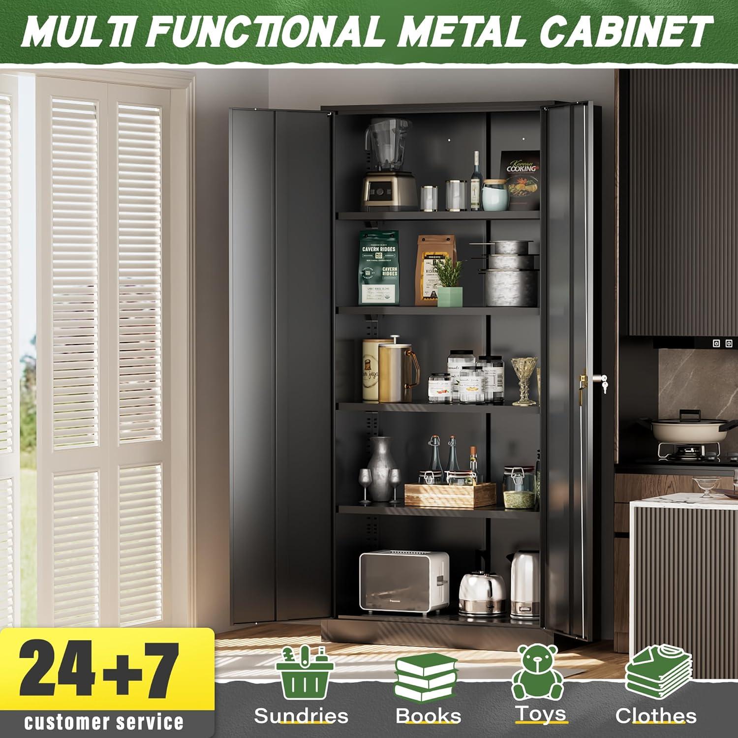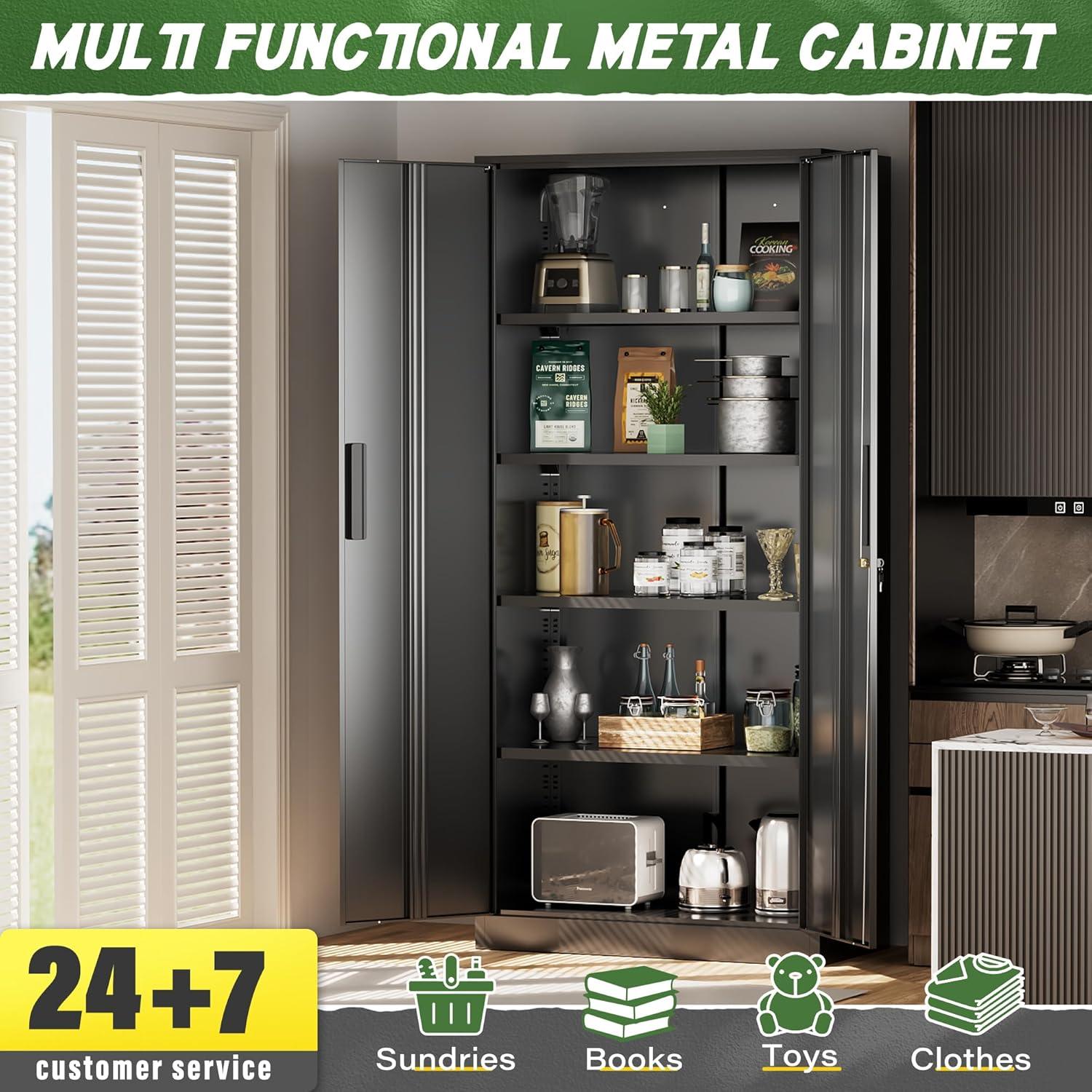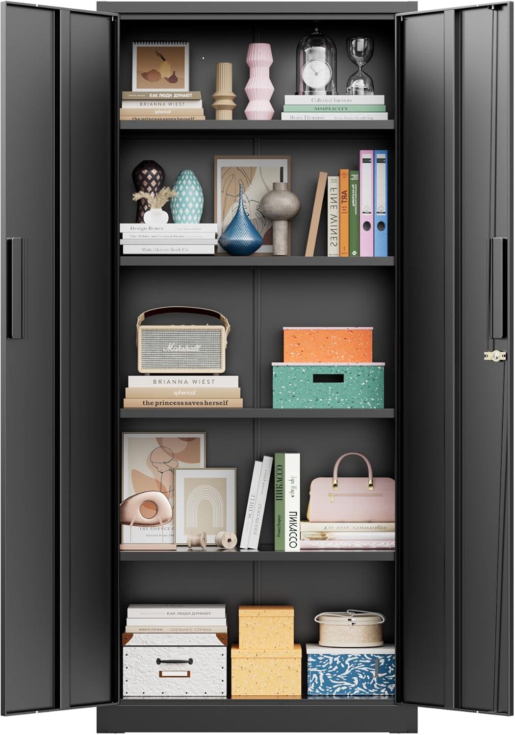 Greenvelly Metal Storage Cabinet,72” Metal Cabinet Storage with Doors and 4 Adjustable Shelves,Tall Storage Cabinet for Home,School,Gym(Grey White)(Black)