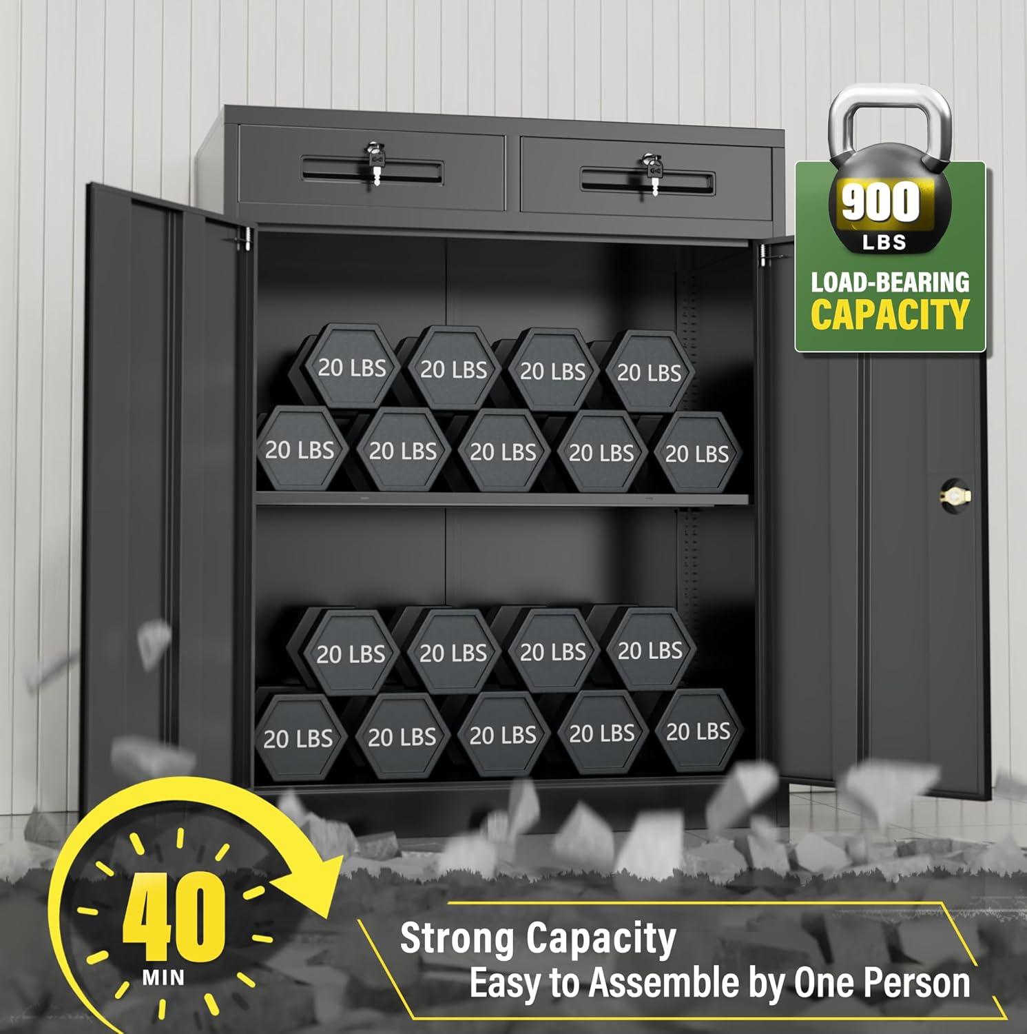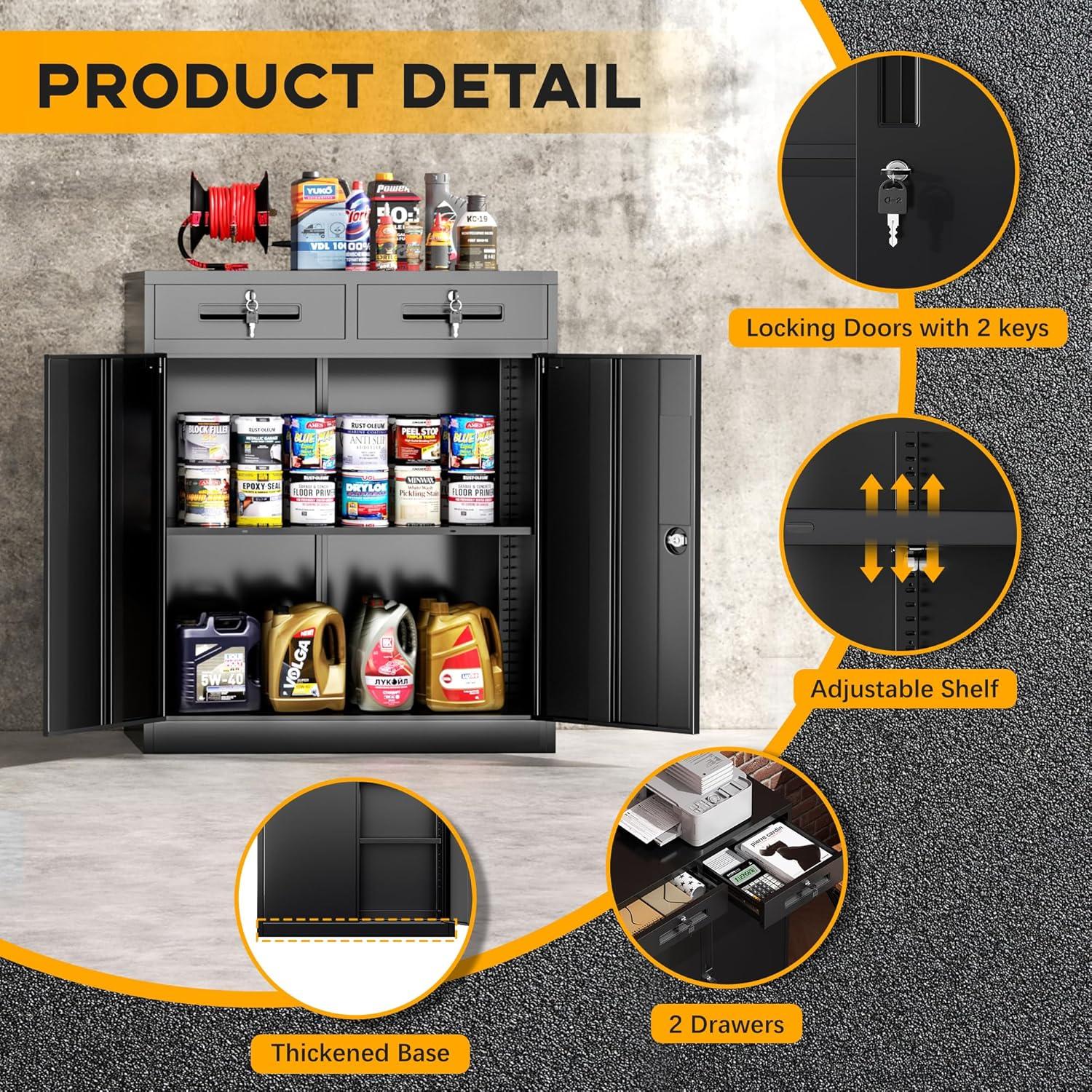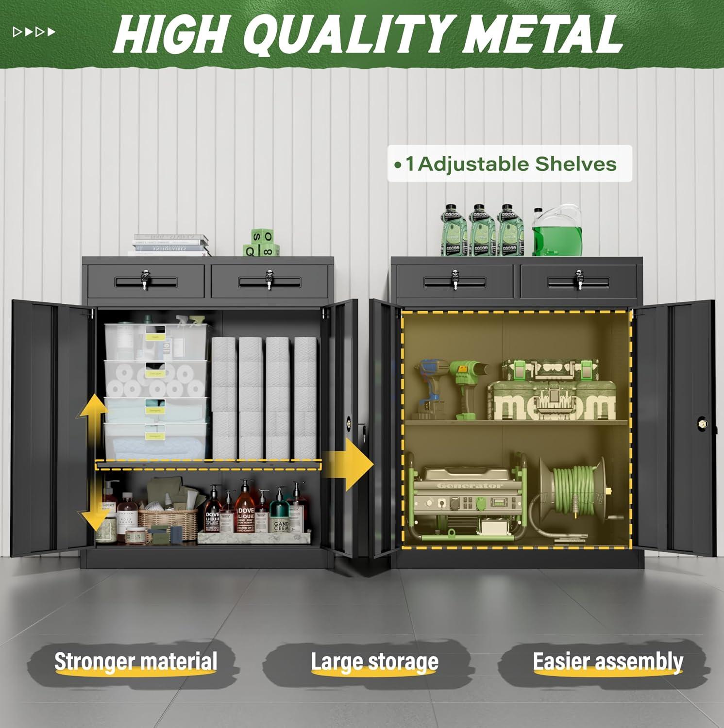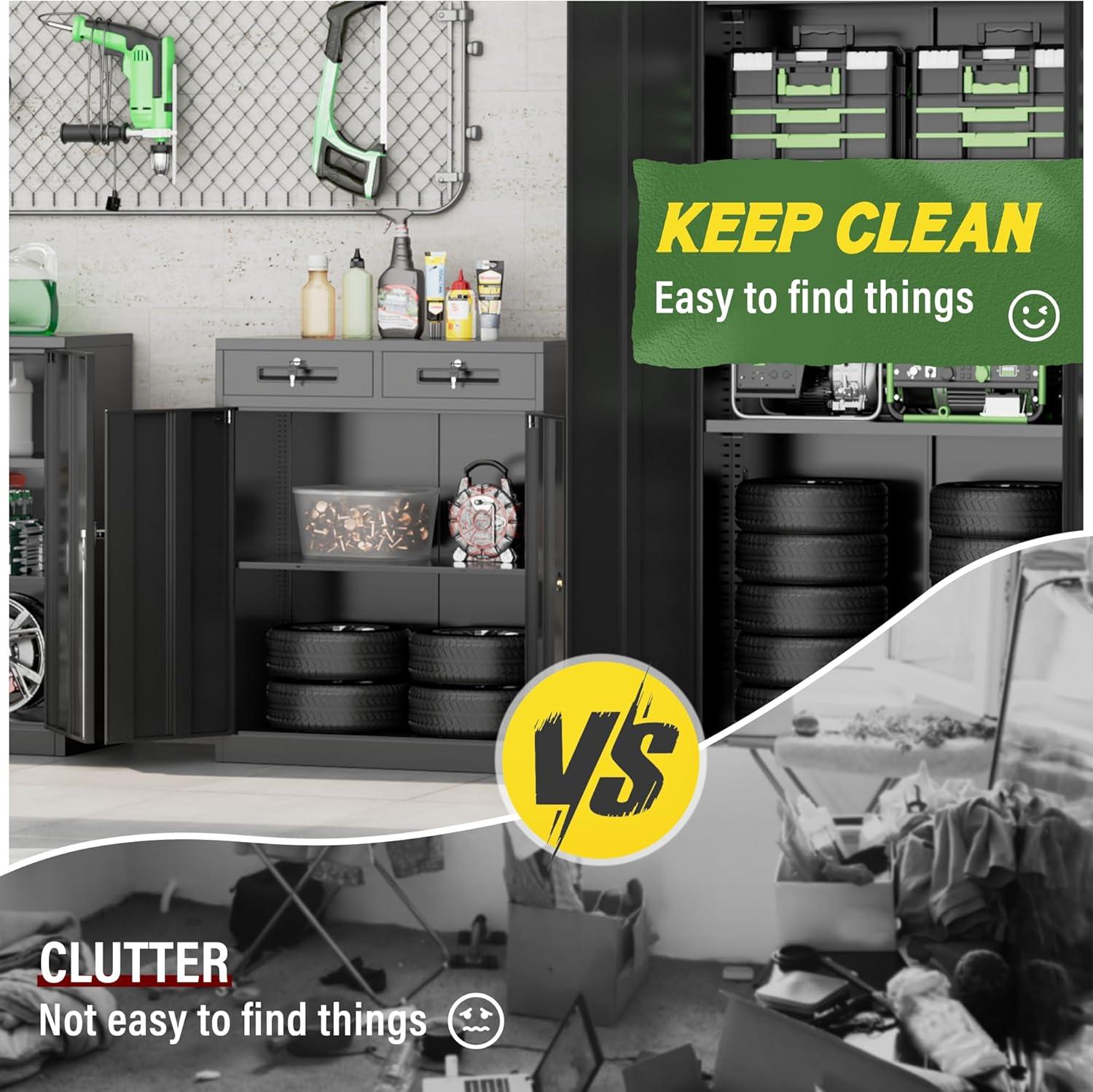 [Assembly and After-sales]:Greenvelly locking storage cabinet is designed to be disassembled, with a comprehensive assembly guide and installation video included in the packaging,making it easy to set up even for those without experience.The garage storage cabinet is securely packed with foam boards during shipping to ensure its safety. Should you encounter any issues or require assistance after your purchase,our customer service team is always ready to assist you.