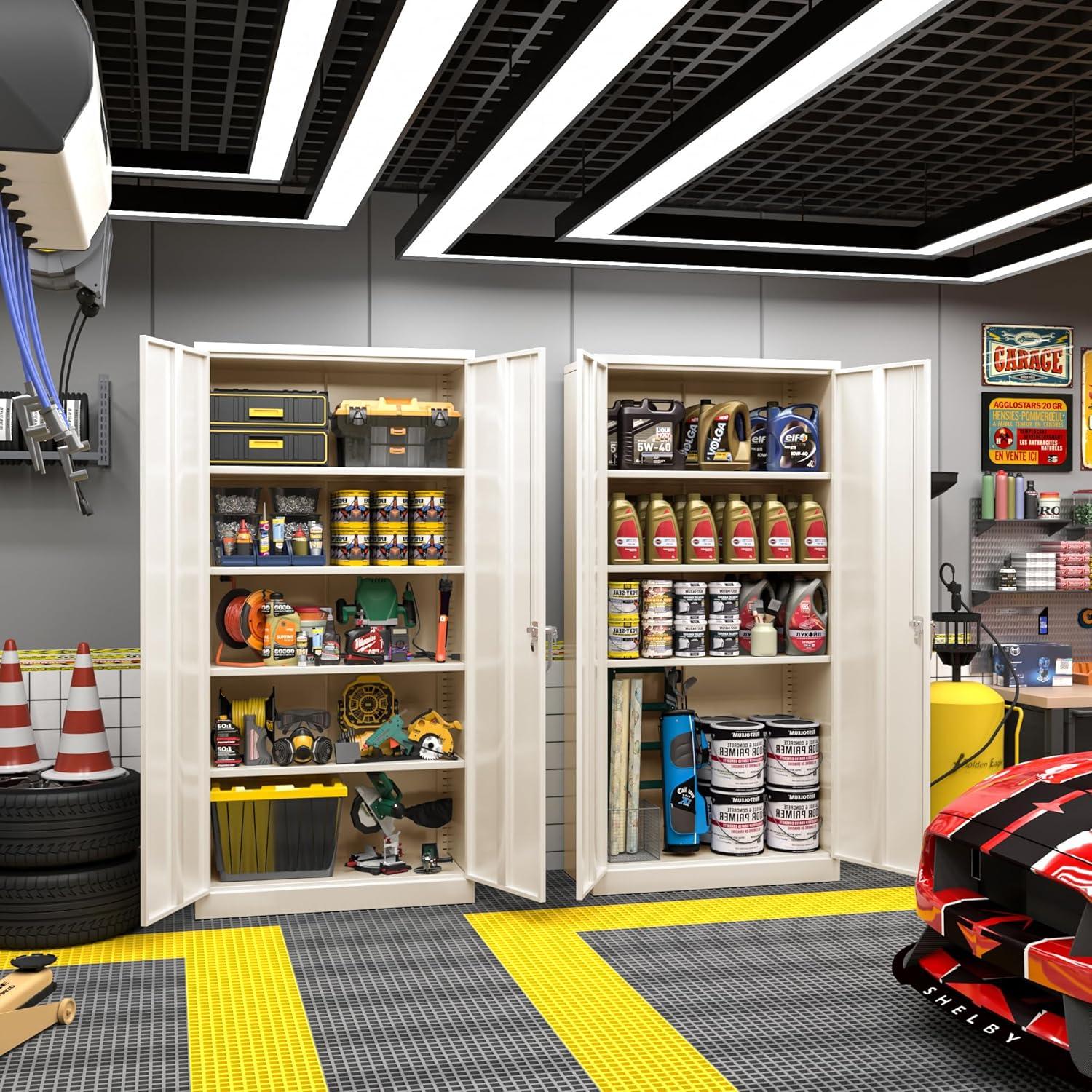 Greenvelly Metal Storage Cabinet,72” Metal Cabinet Storage with Doors and 4 Adjustable Shelves,Tall Storage Cabinet for Home,School,Gym(Grey White)(Dark Grey)