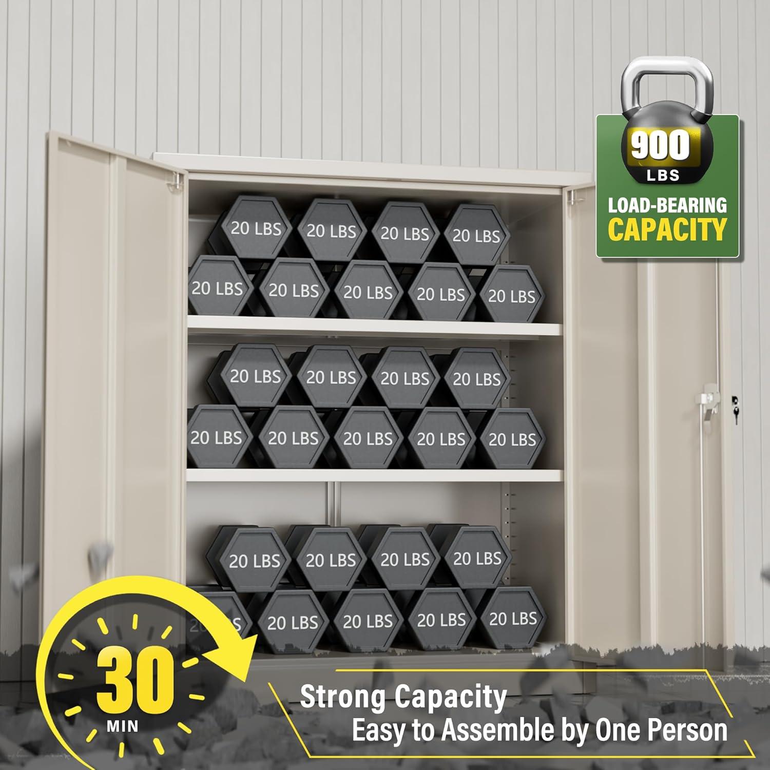 [Assembly and After-sales]:Greenvelly locking storage cabinet is designed to be disassembled, with a comprehensive assembly guide and installation video included in the packaging,making it easy to set up even for those without experience.The garage storage cabinet is securely packed with foam boards during shipping to ensure its safety. Should you encounter any issues or require assistance after your purchase,our customer service team is always ready to assist you.