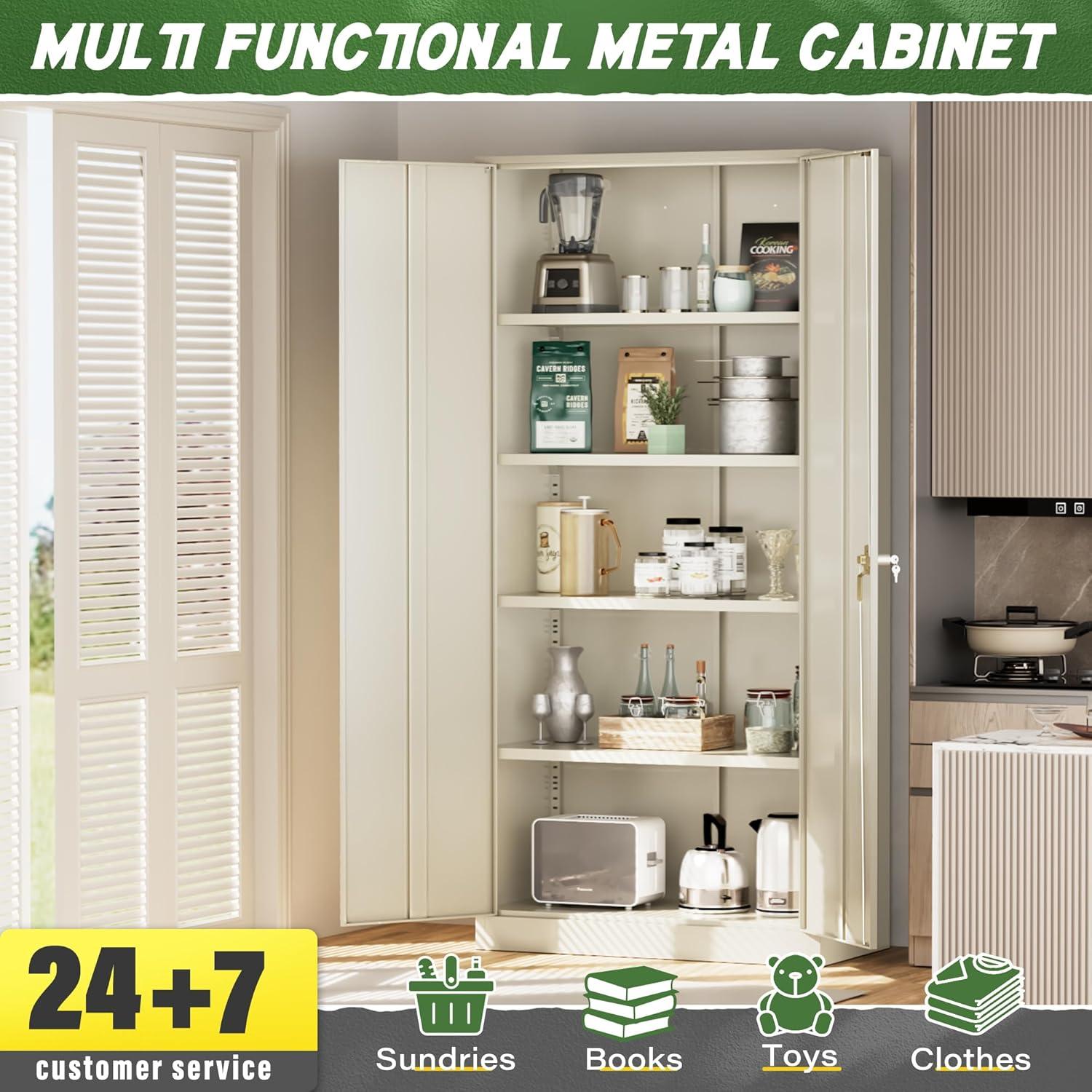 [Ample Storage Space]:Greenvelly 72″H*32″W*16″D metal storage cabinet with 4 adjustable shelves,providing a total of 5 layers to freely customize the space according to the size of items such as kitchen utensils, personal care items, and garage tools. Its minimalist design suits various environments including garages, schools, and offices
