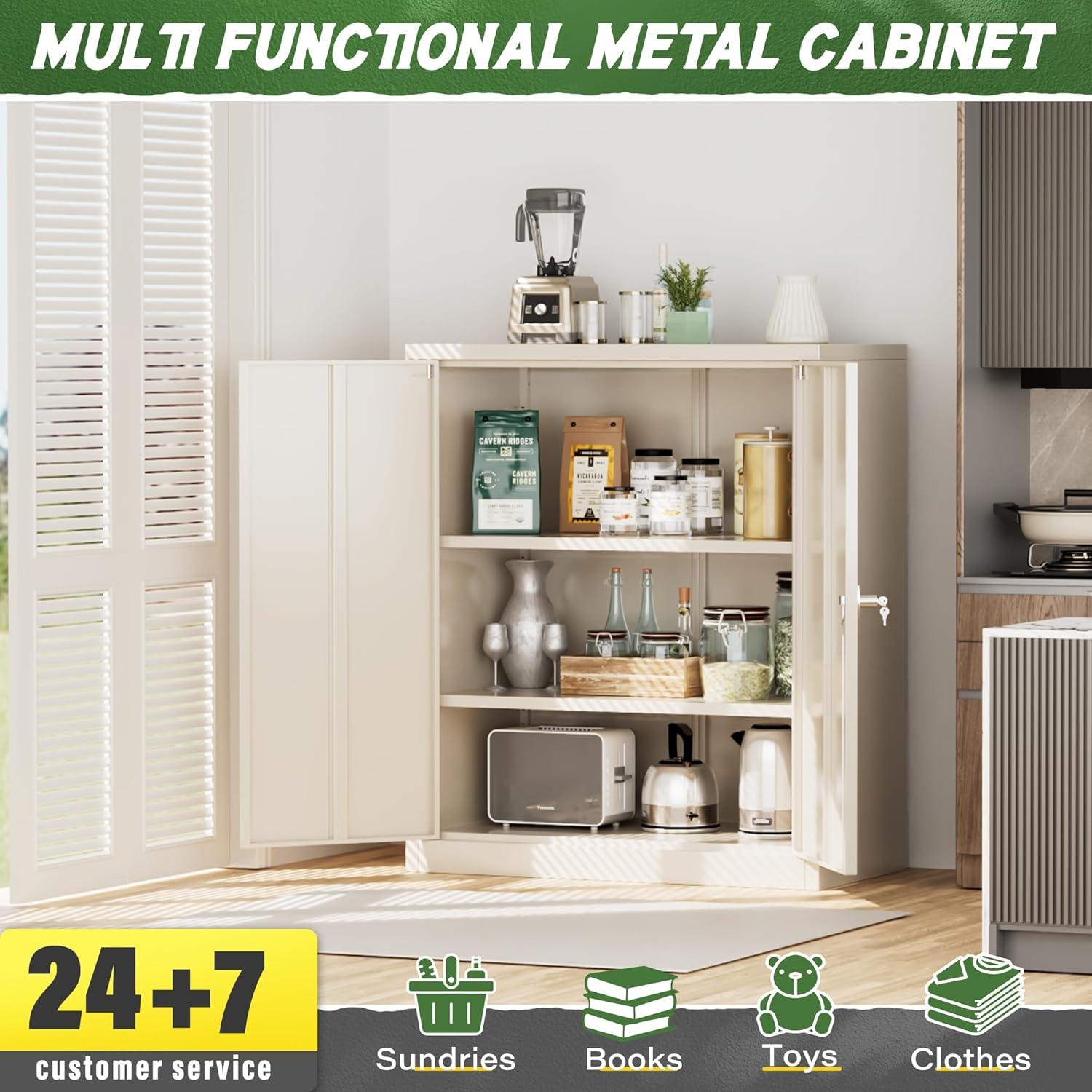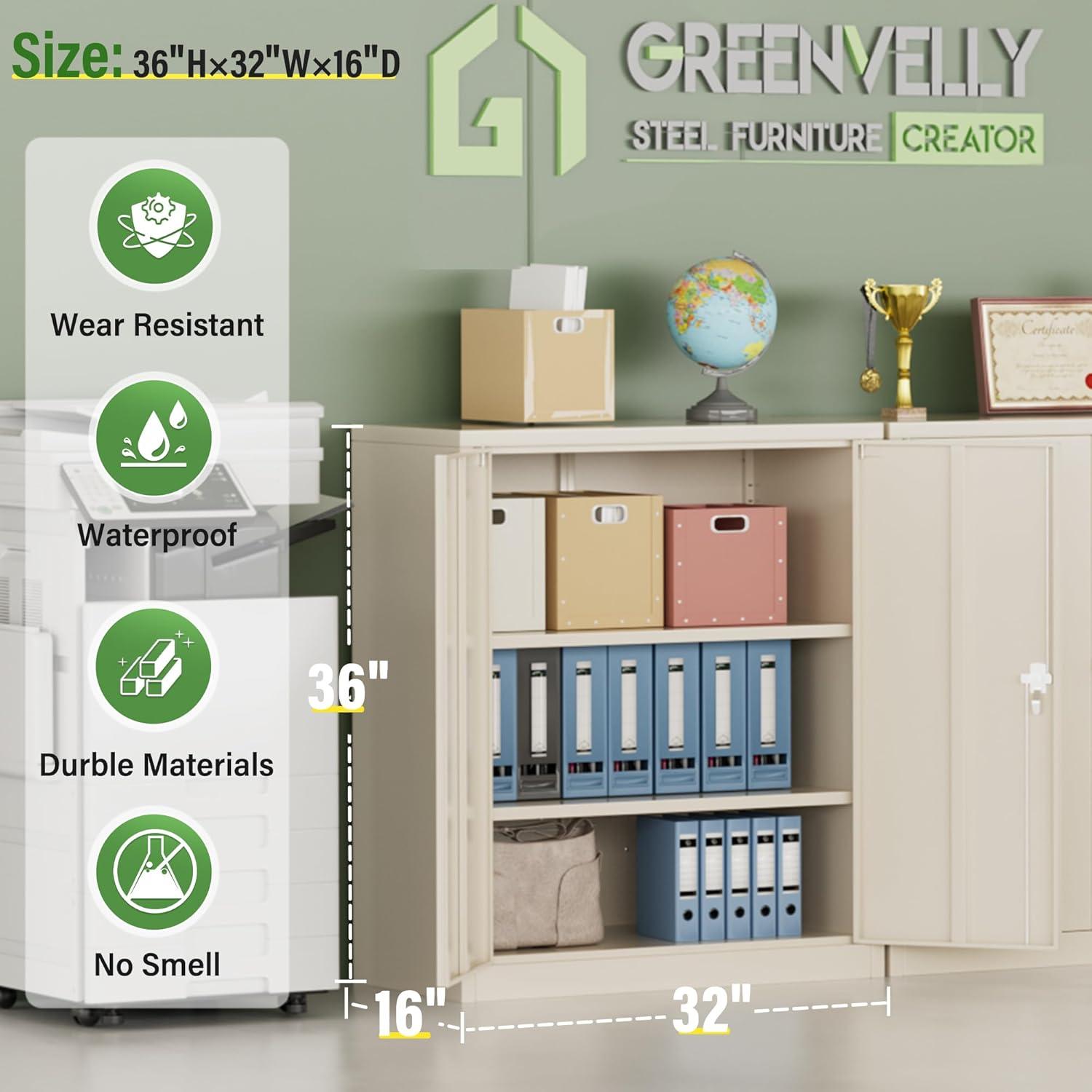 [Upgraded Locking System]:Greenvelly metal storage cabinet with lock is equipped with an advanced three-point locking system,which is made of high-quality metal materials to ensure the safety of valuable items inside the cabinet.It also comes with two keys,one of which serves as a backup in case the original key is lost.