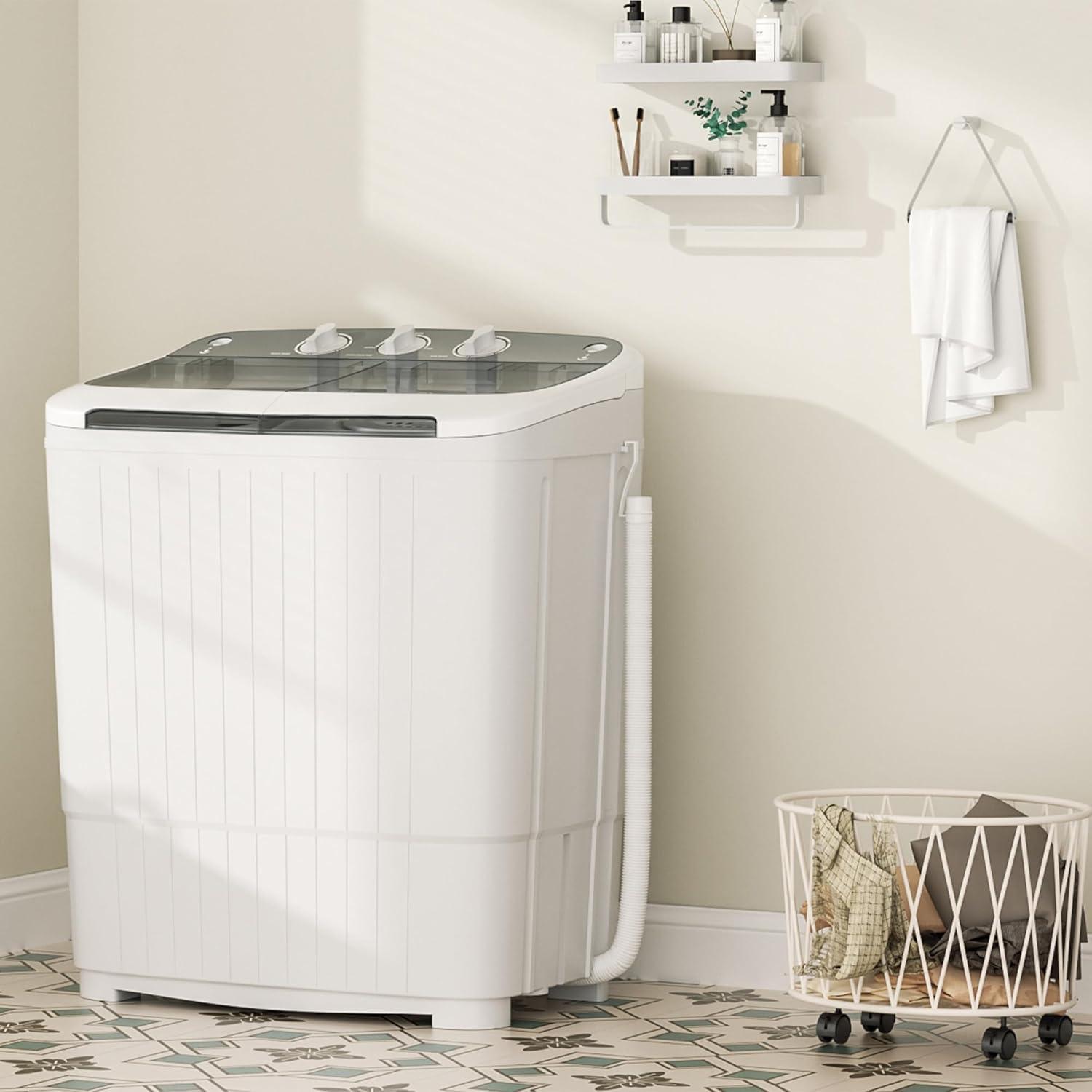 Greenvelly Portable Washing Machine, 16lbs Portable Washer and Dryer Combo with Extended Drain, 2 In 1 Mini Compact Tub Laundry Washine for Camping, Apartments, Dorms, RV (Grey)(Grey)