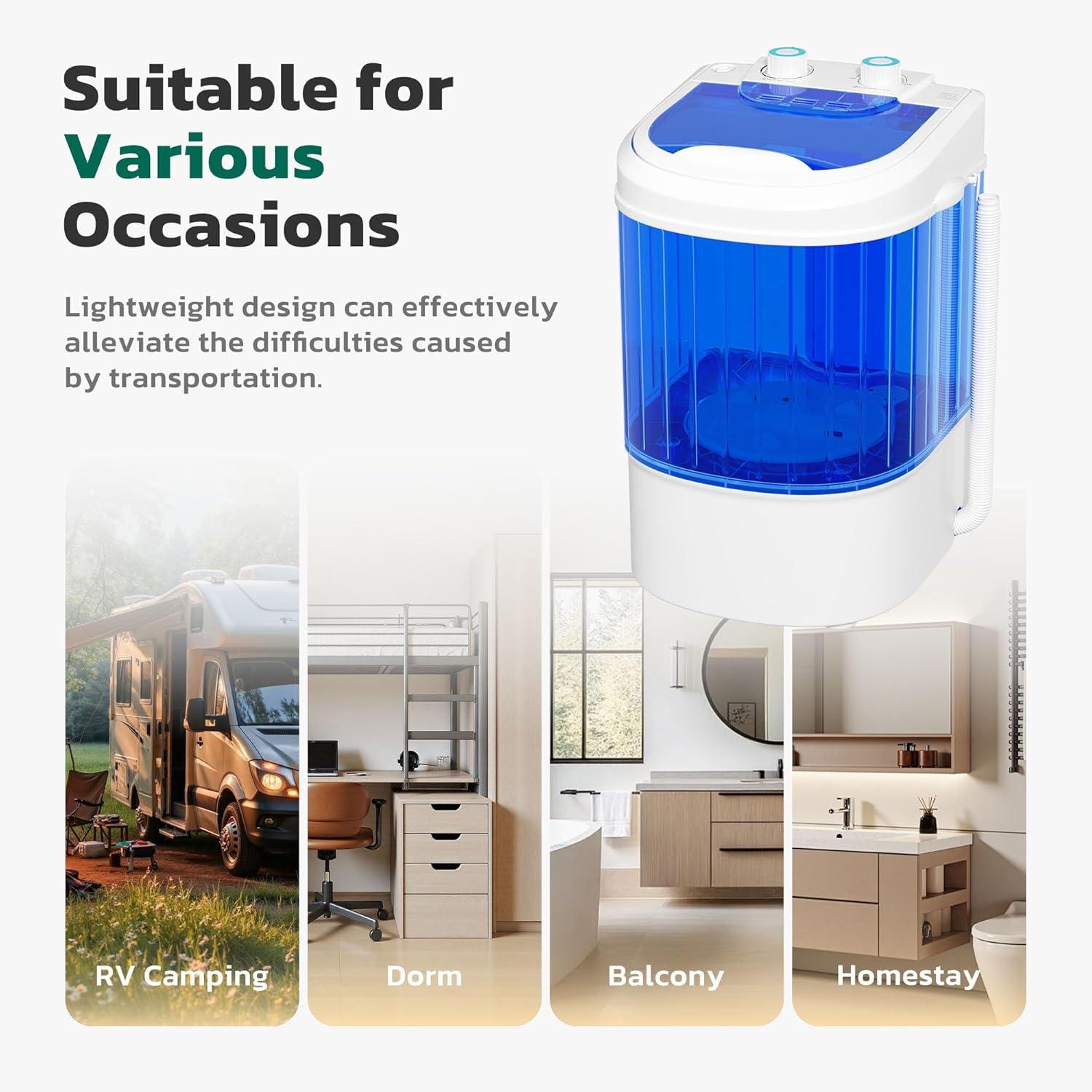 【Ultra Portable Design】Greenvelly mini washing machine measures only 18.5″H x 13″D x 13″W, making it perfect for places with limited space such as apartments, dormitories, residences, or RVs. The whole machine weighs only 11 pounds, making it easy to carry and store.