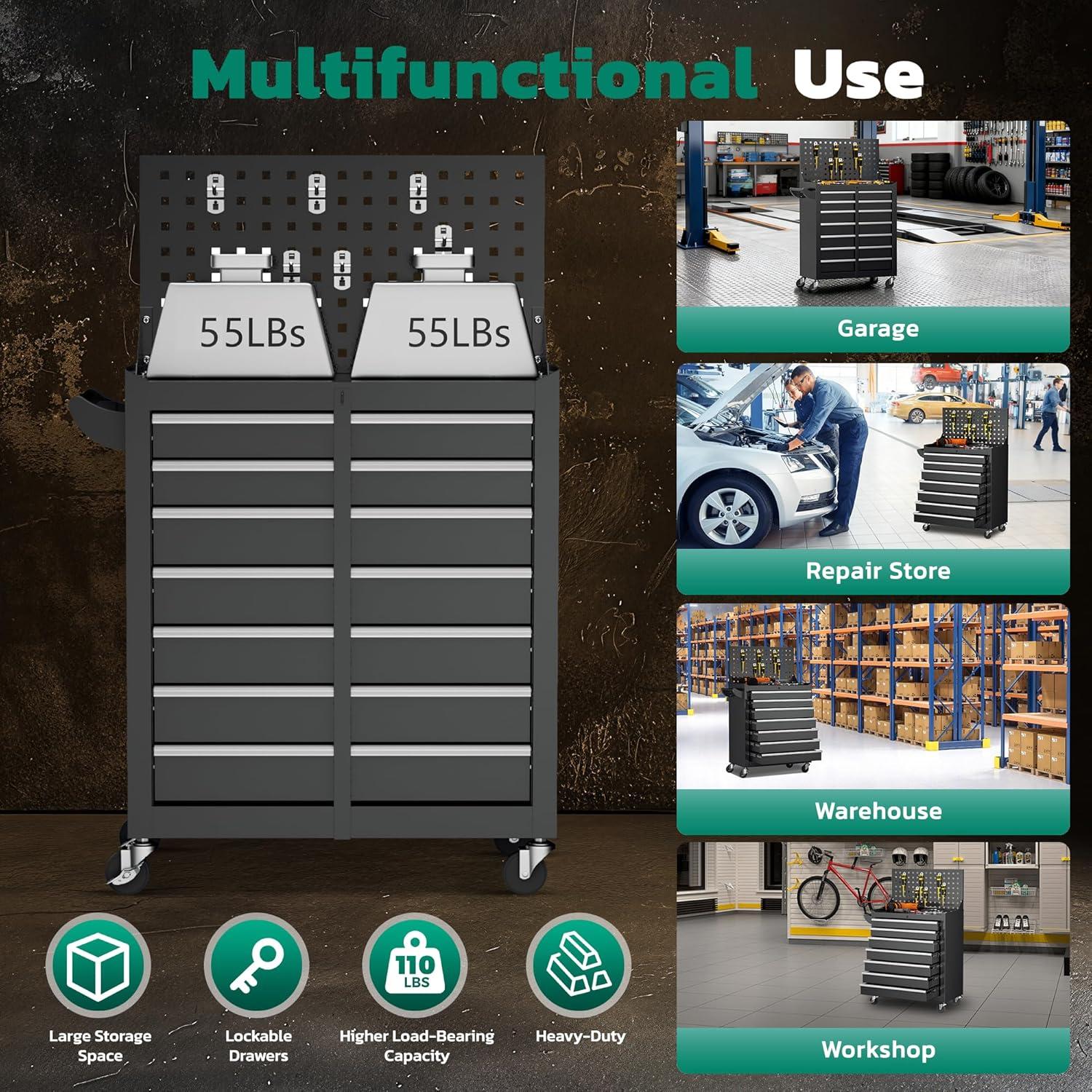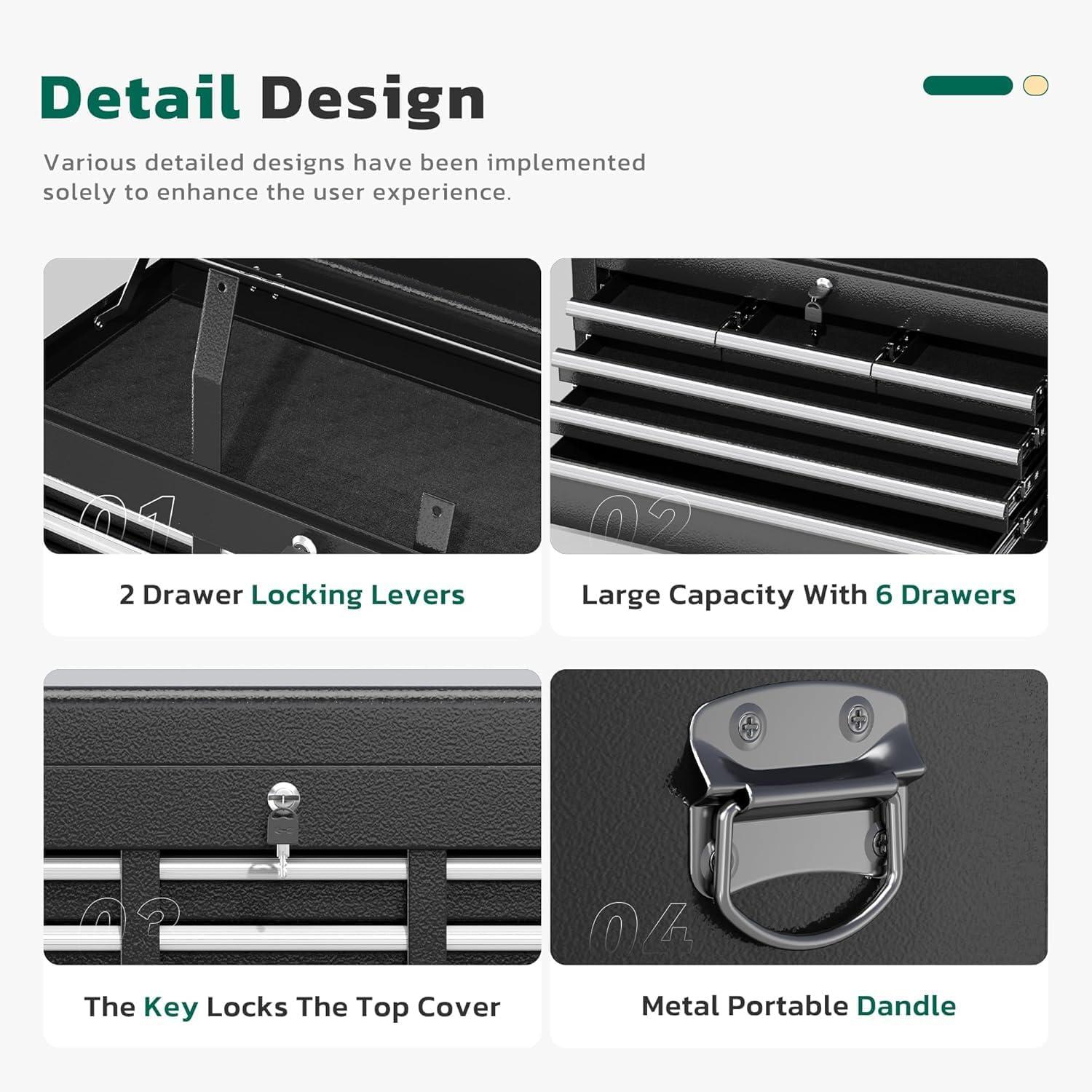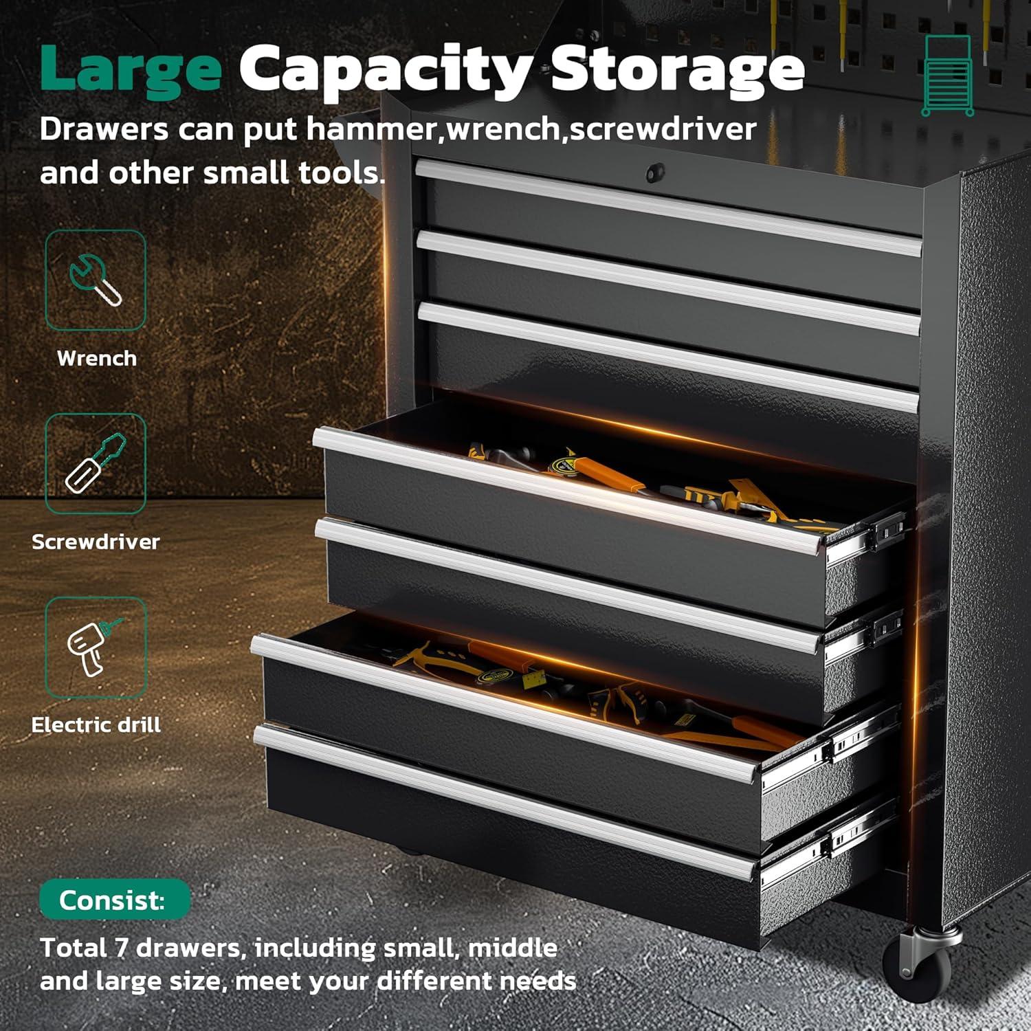 【Regarding Materials】Greenvelly tool chest is made of sturdy cold-rolled steel, with easy to maintain powder coatings on both the inner and outer surfaces to prevent rust and scratches, extending the product's lifespan. In addition, each drawer contains EVA padding, which has good cushioning and insulation properties, effectively protecting your tools.